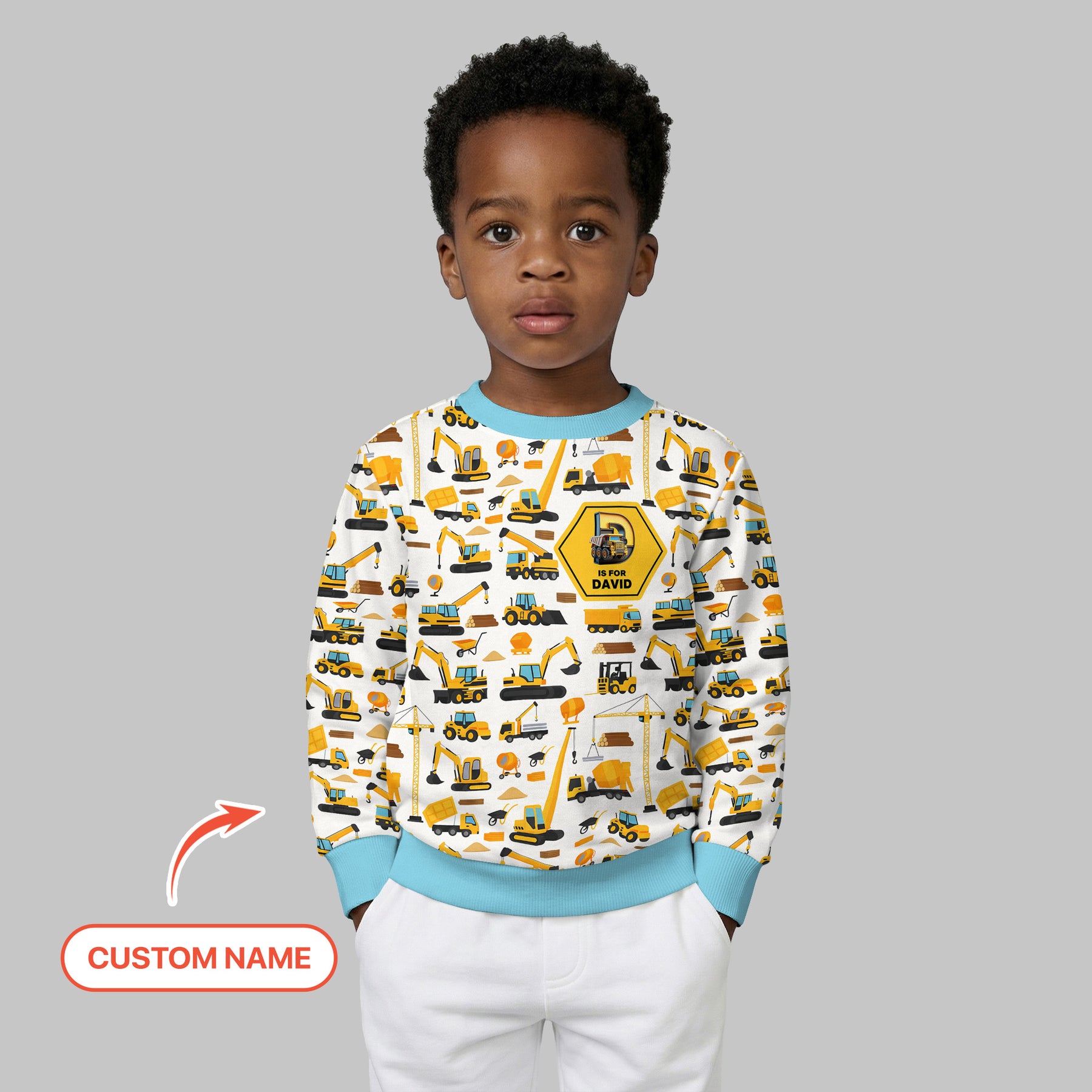 Built for little builders who love all things trucks and tools! This playful construction-themed print features excavators, dump trucks, cranes, mixers, and more—finished with your child’s custom initial and name for a personalized touch that makes bedtime extra special.