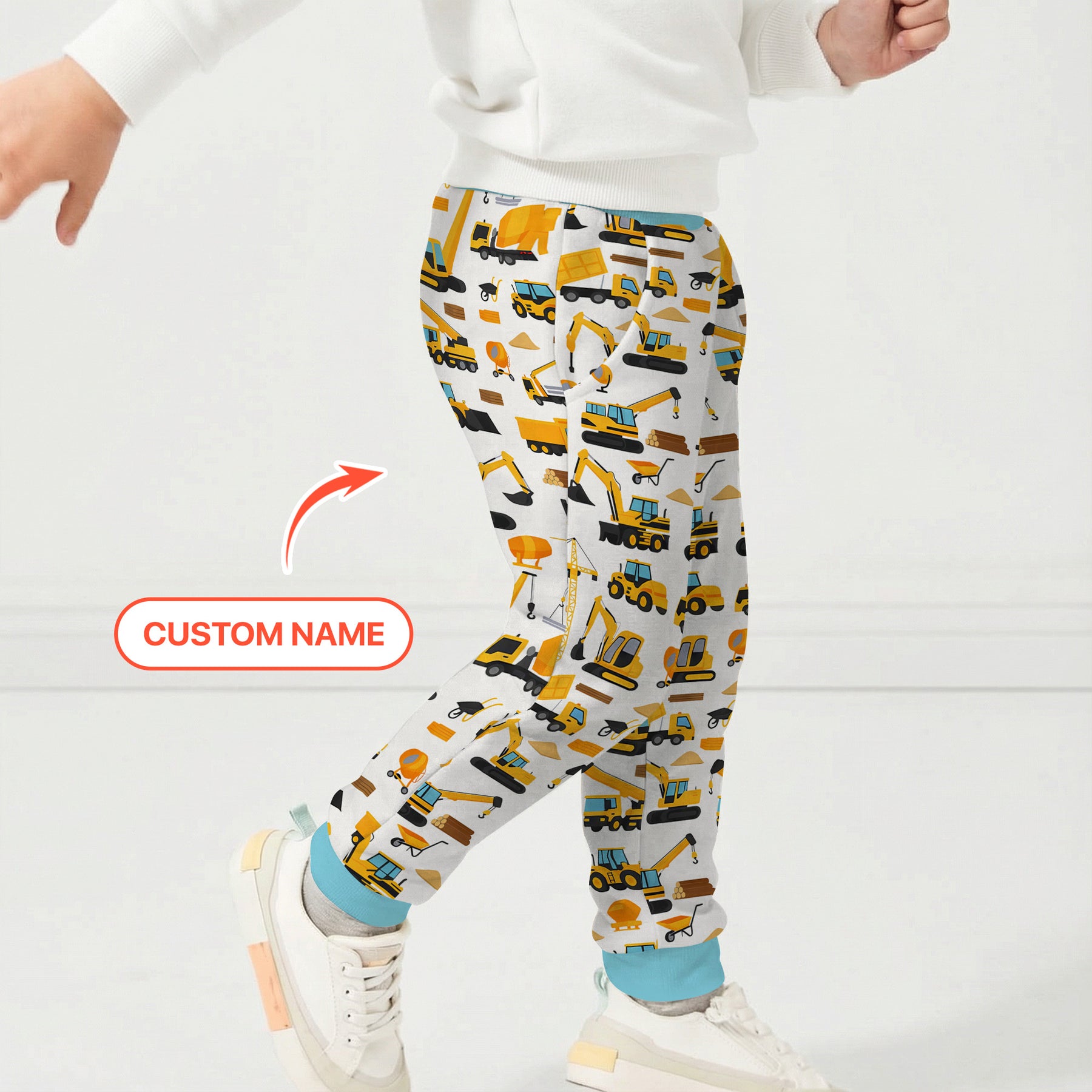 Built for little builders who love all things trucks and tools! This playful construction-themed print features excavators, dump trucks, cranes, mixers, and more—finished with your child’s custom initial and name for a personalized touch that makes bedtime extra special.