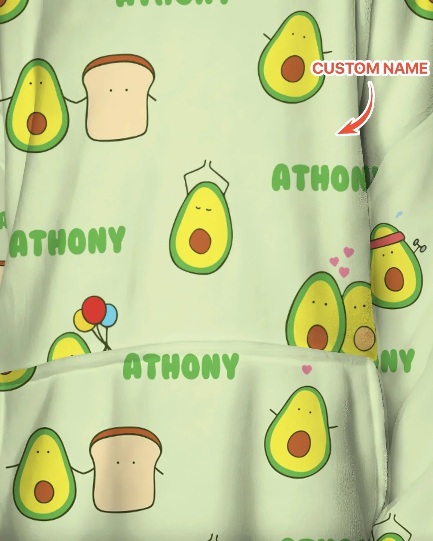 Custom Name Cute Avocado Blanket Hoodie