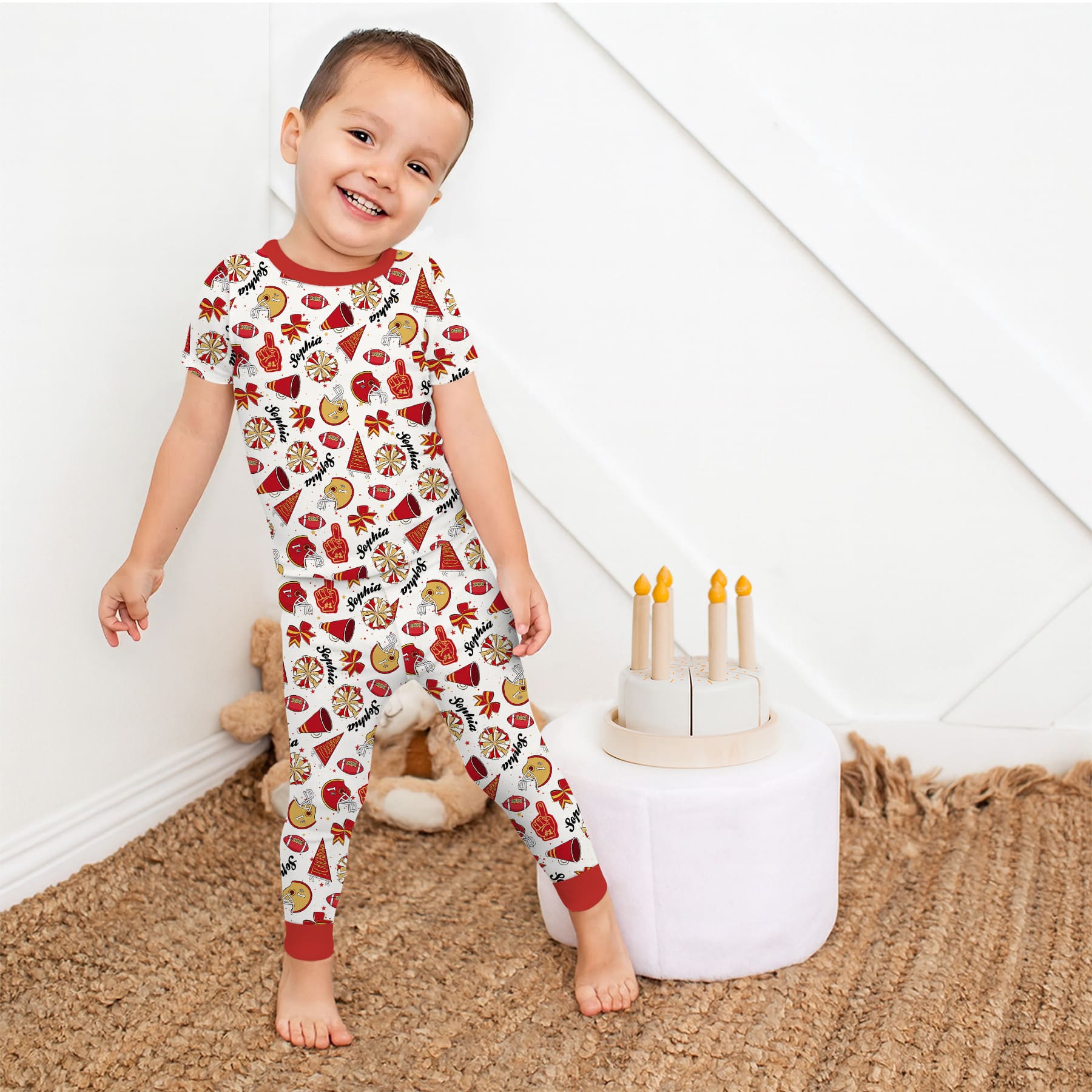 Custom Name Football Cheerleader Two Piece Short Sleeve Pajama Set