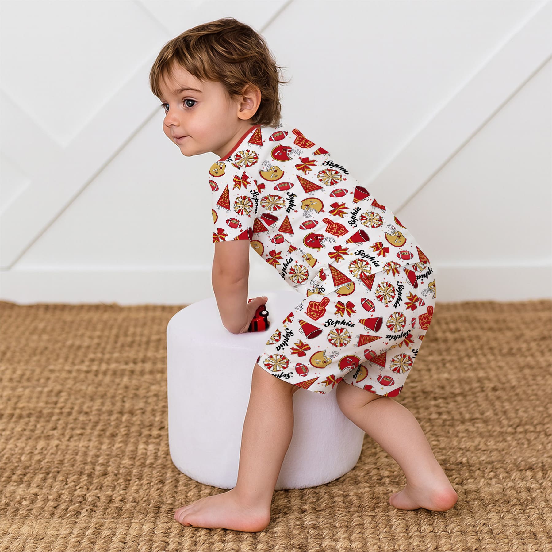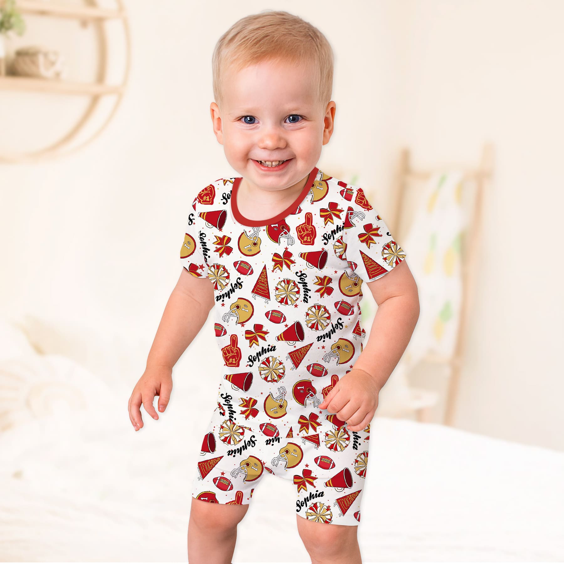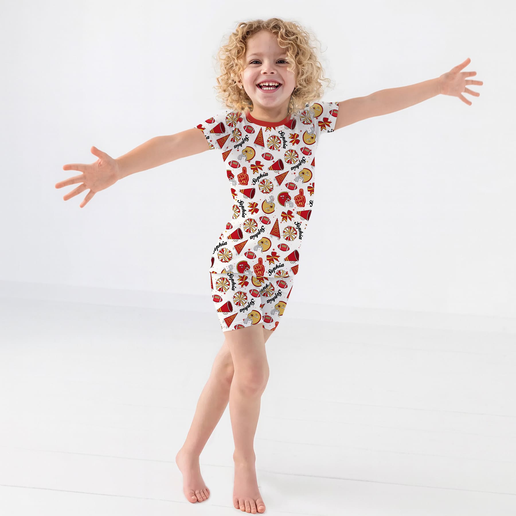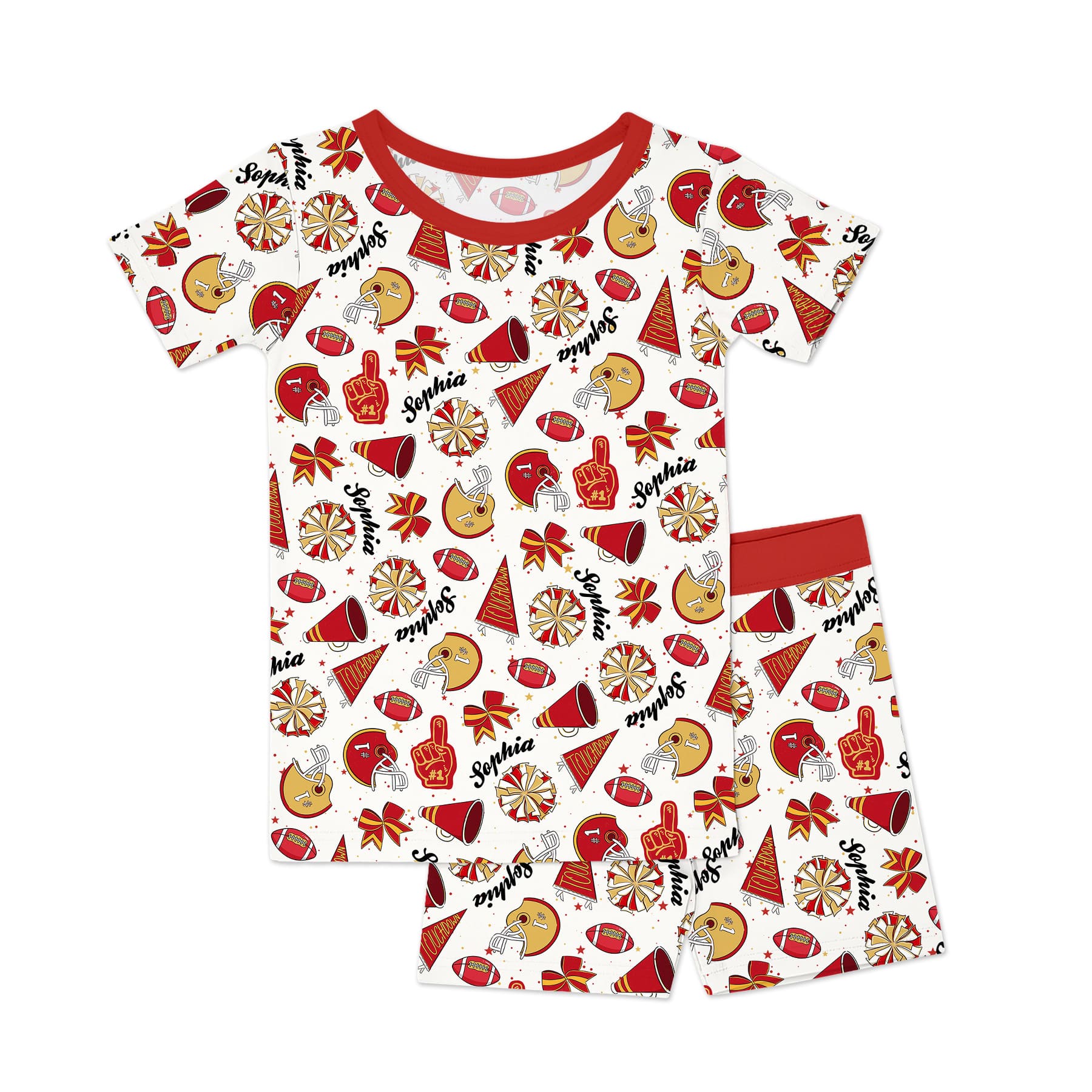 Custom Name Football Cheerleader Two Piece Short Sleeve Shorts Pajama Set