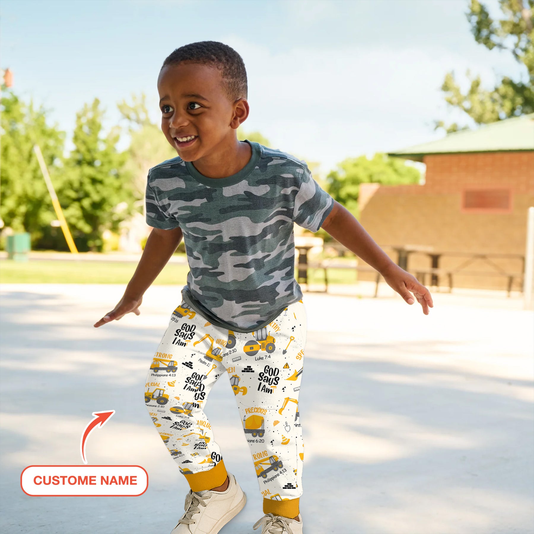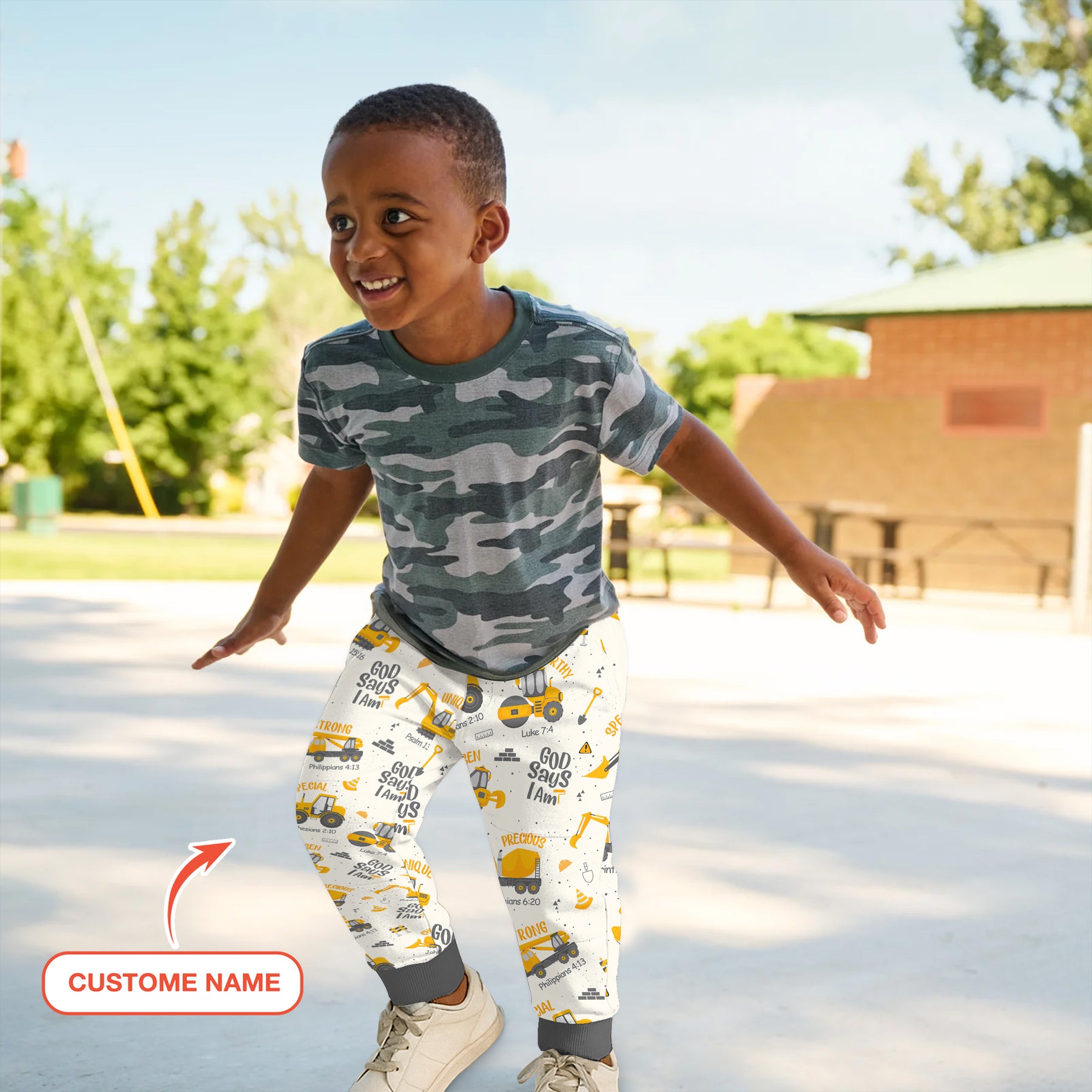 Build up faith and fun with our God Says I Am – Construction Vehicles Custom Name Collection! Packed with colorful trucks, diggers, and fire engines alongside uplifting affirmations, this design reminds little ones of their strength, courage, and worth in God’s eyes. Add their name for a personalized touch that makes each piece truly unique. Made from ultra-soft, breathable bamboo fabric, this collection is gentle on delicate skin—perfect for playful days, cozy nights, and every snuggly cuddle in between.
