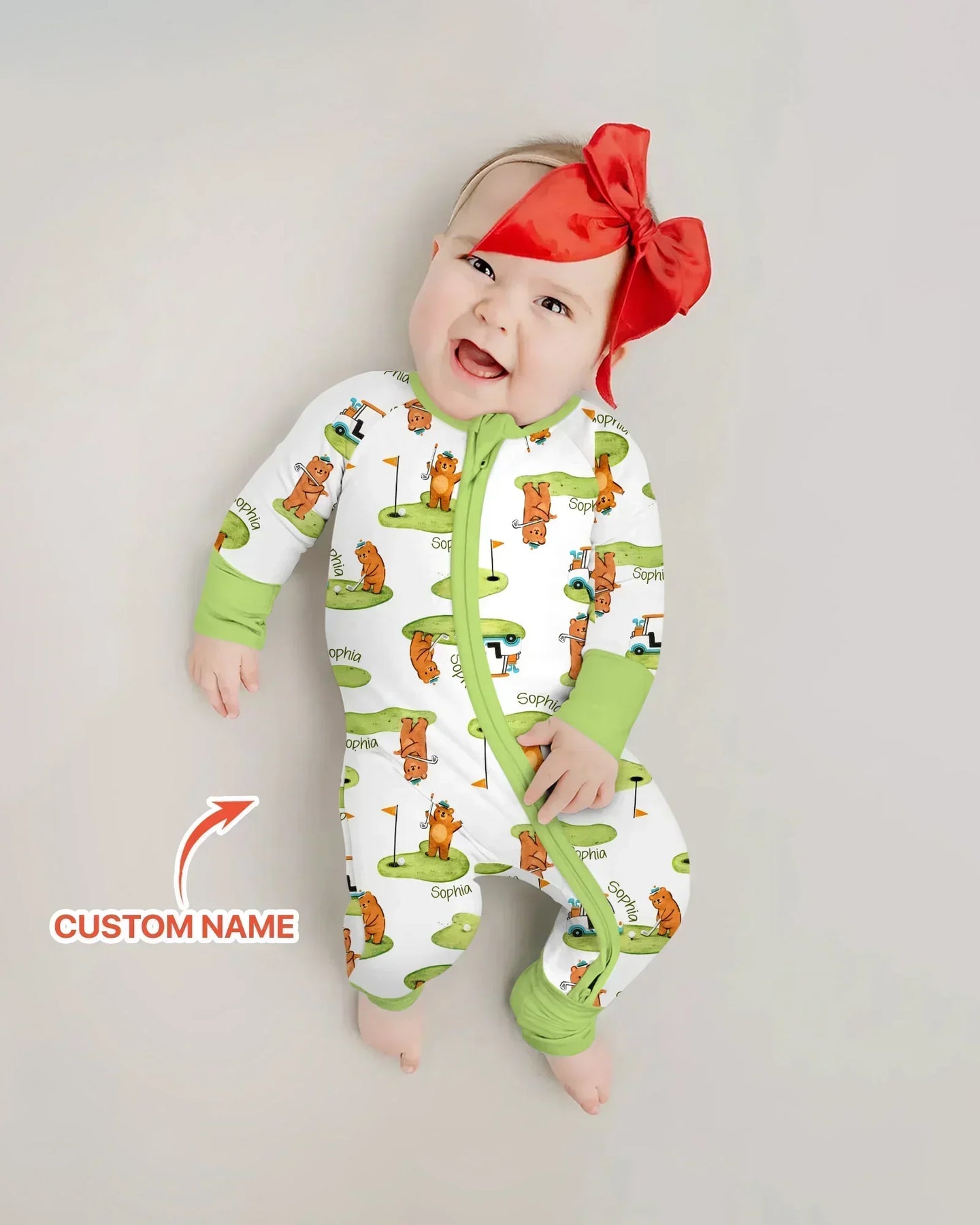 Tee off in cozy style with our Custom Name Bear Golf Pajama Collection. Featuring adorable golfing bears and green-inspired prints, this collection is crafted from ultra-soft, breathable fabric for all-night comfort. Perfect for babies, kids, and matching family sets—personalized for little golfers and memorable gifting moments.