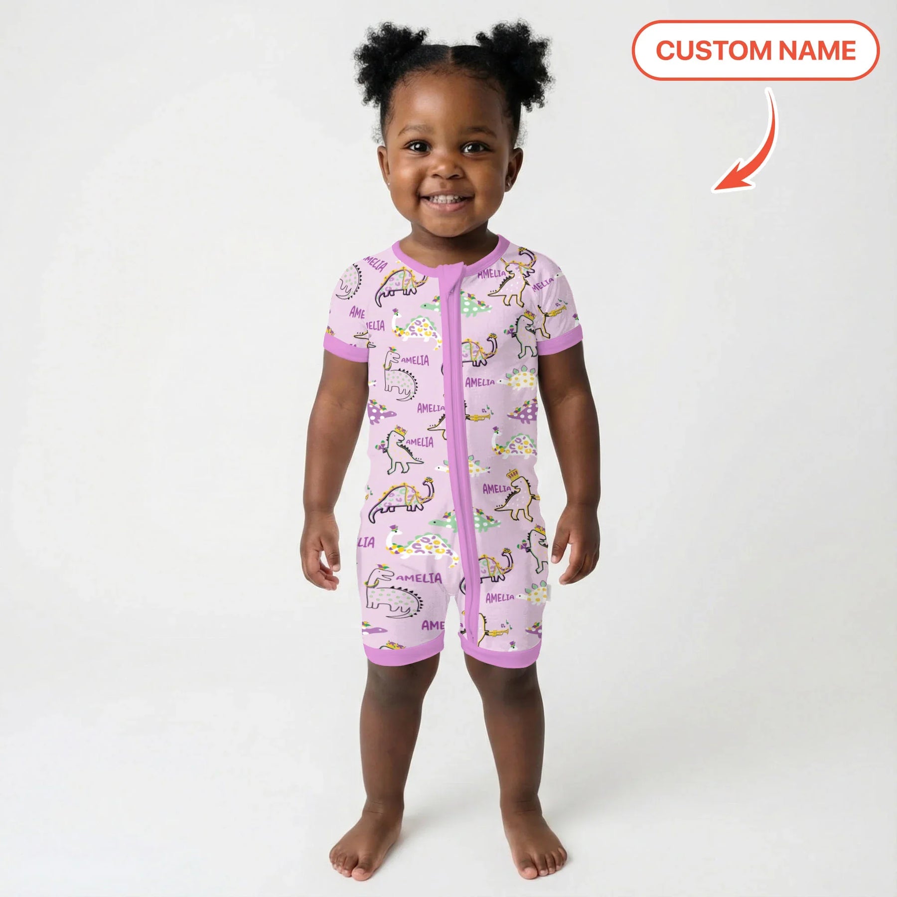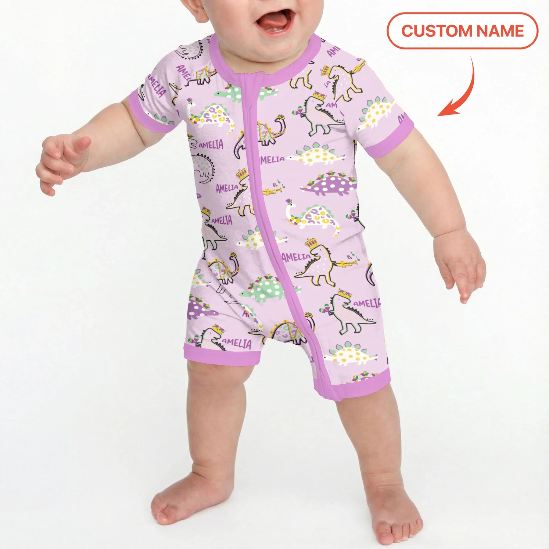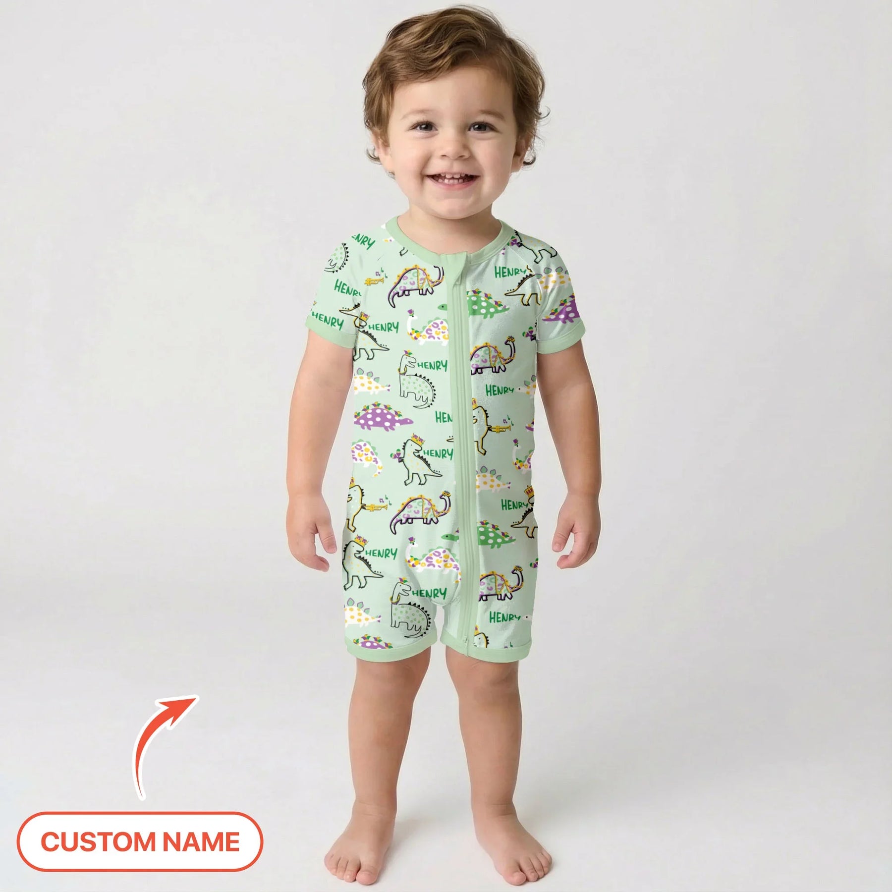 Mardi Gras Dino Collection – Adorable Mardi Gras–inspired dinosaur prints with optional custom names, crafted in ultra-soft, breathable fabric for cozy sleepwear and matching styles across the entire collection.