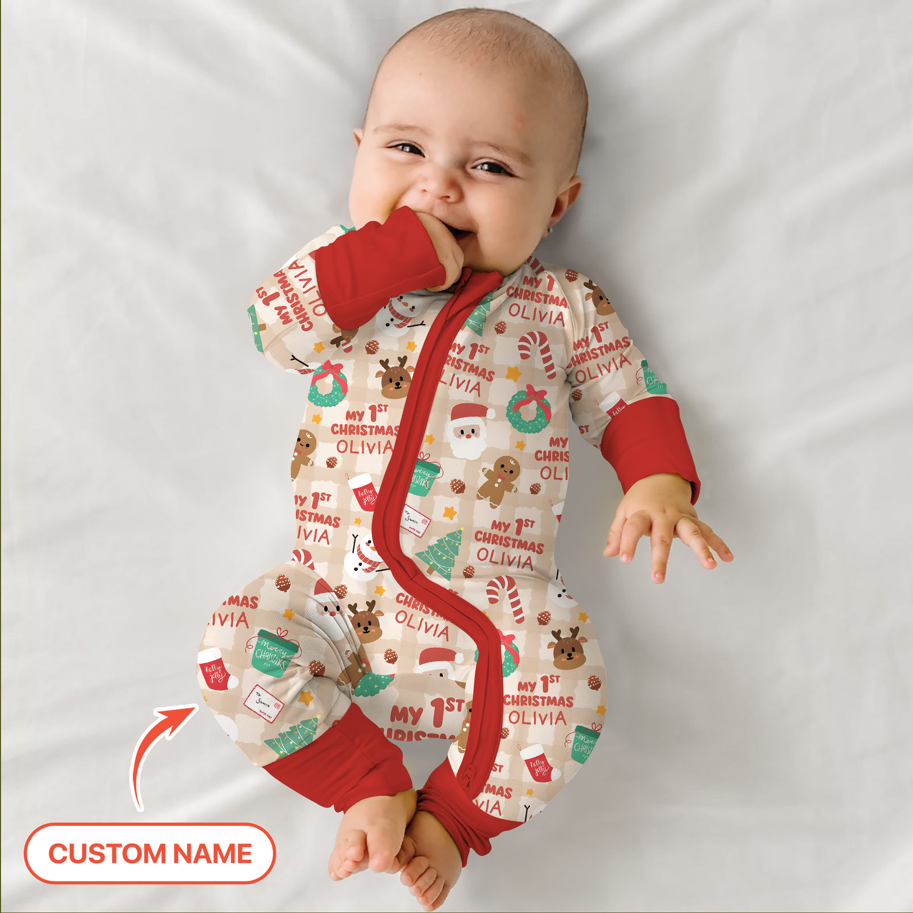 Custom Name My First Christmas Mocha Gingham Convertible Zippy
