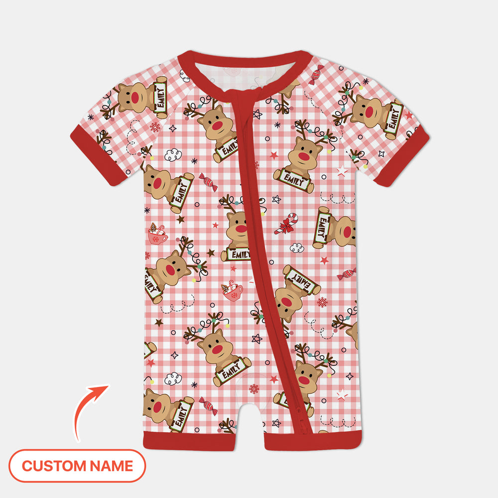Celebrate the season with our Custom Name Reindeer Gingham Zippy & Pajamas, made from buttery-soft bamboo fabric for ultimate comfort. Featuring a classic gingham design with playful reindeer and your child’s name, these cozy PJs bring personalized holiday cheer to bedtime.