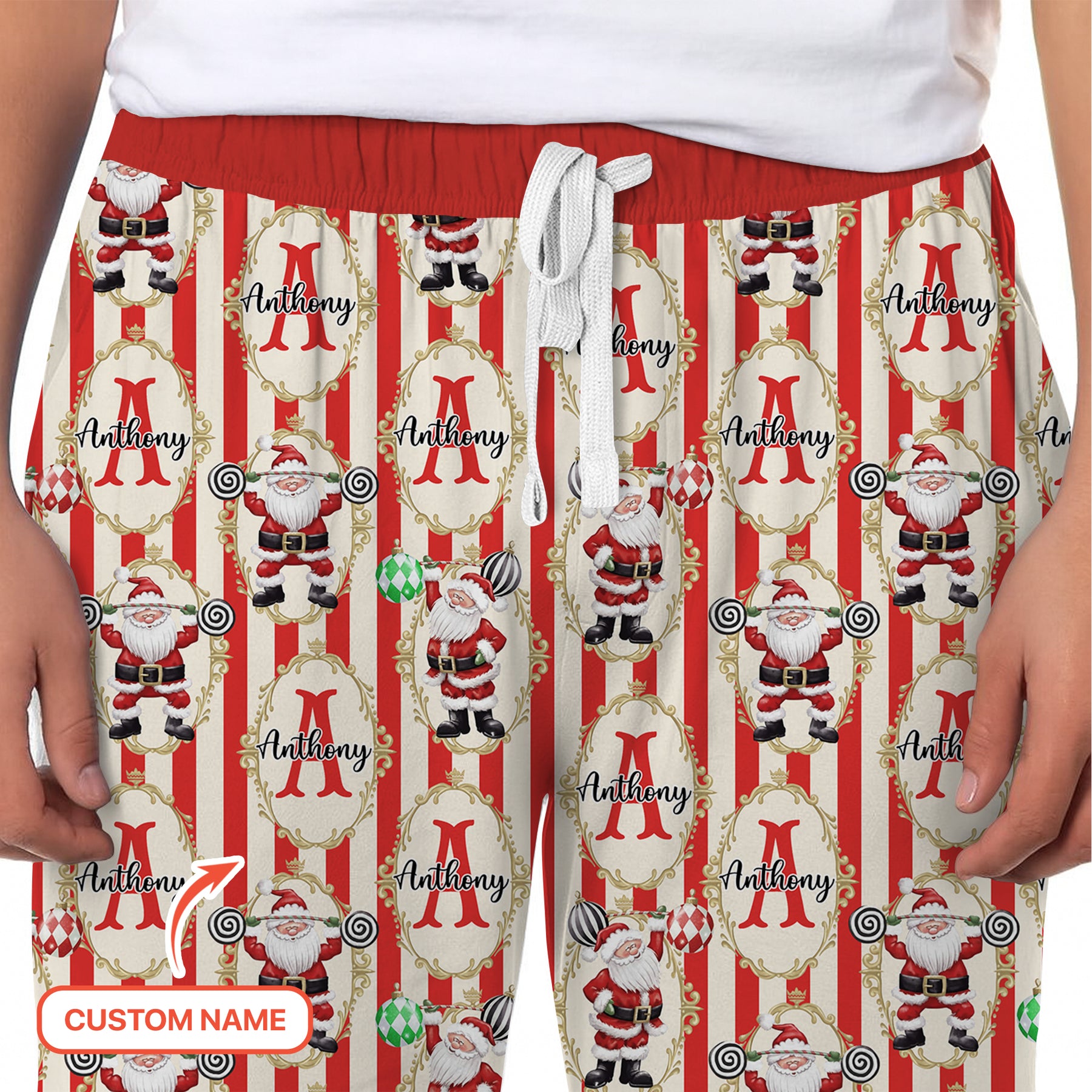Custom Name Santa Stripes Men's Pajama Set