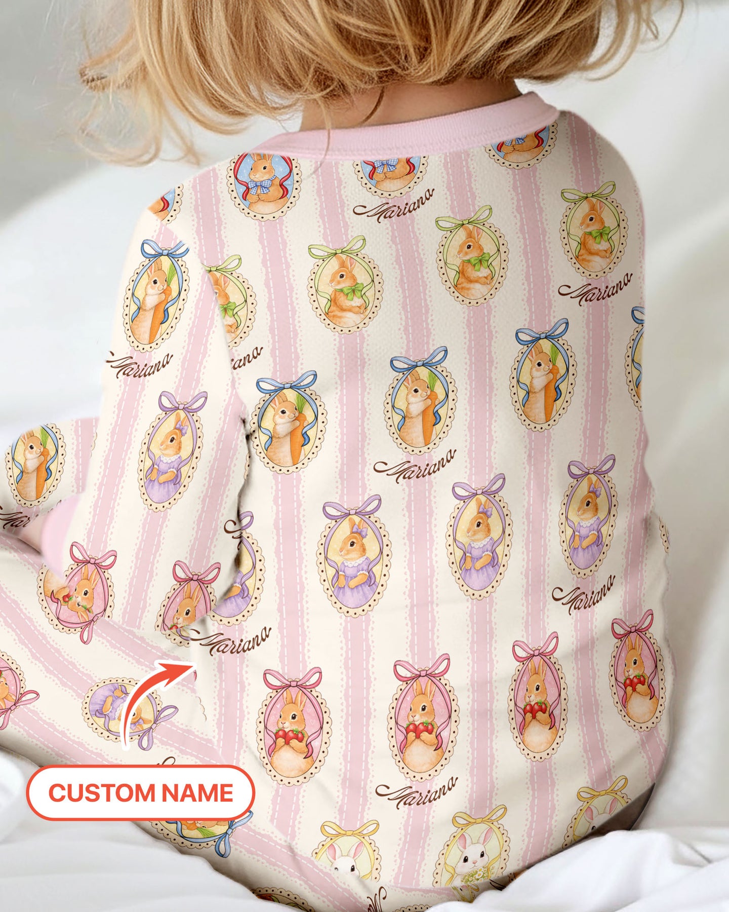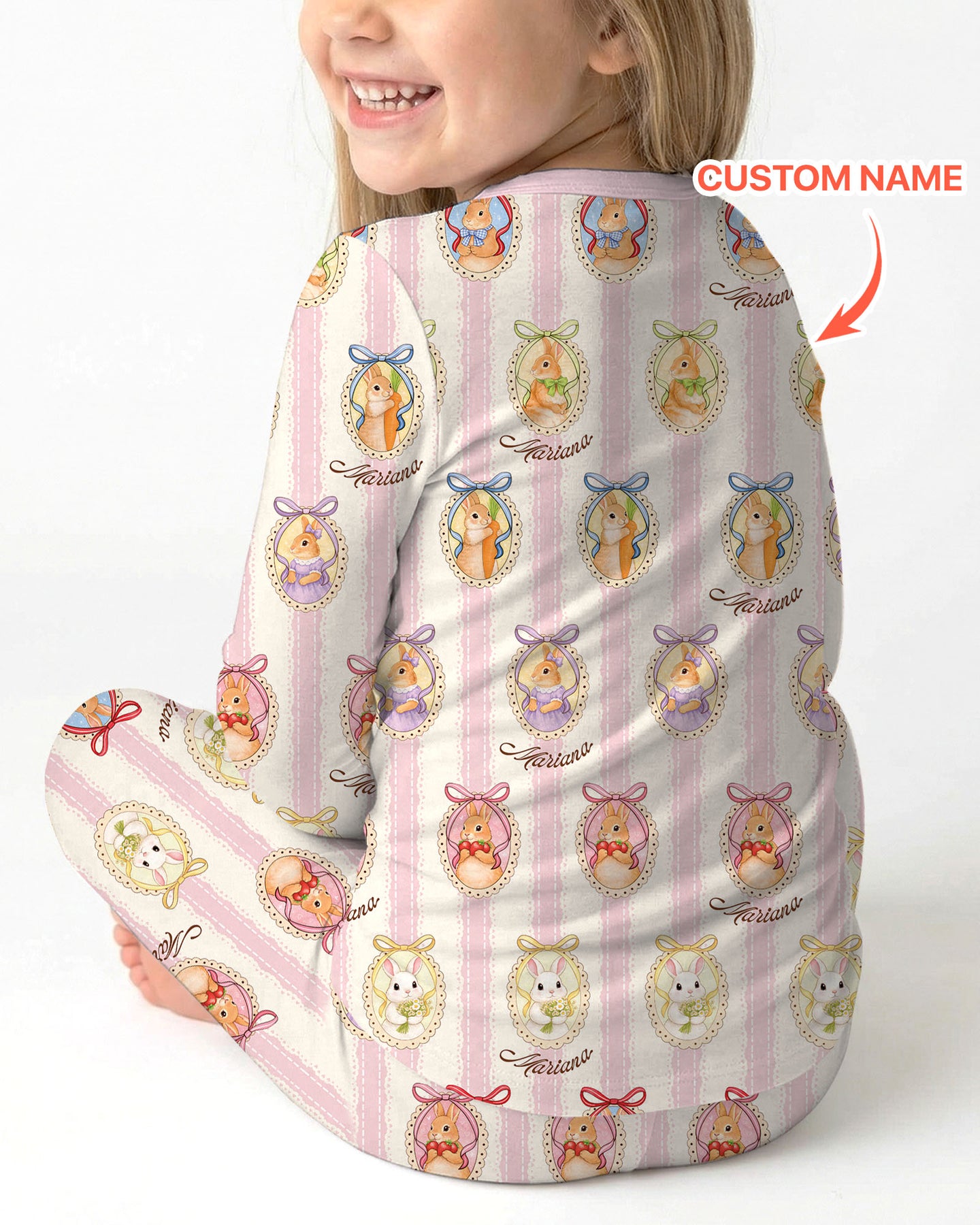Custom Name Vintage Easter Bunny Two Piece Long Sleeve Pajama Set