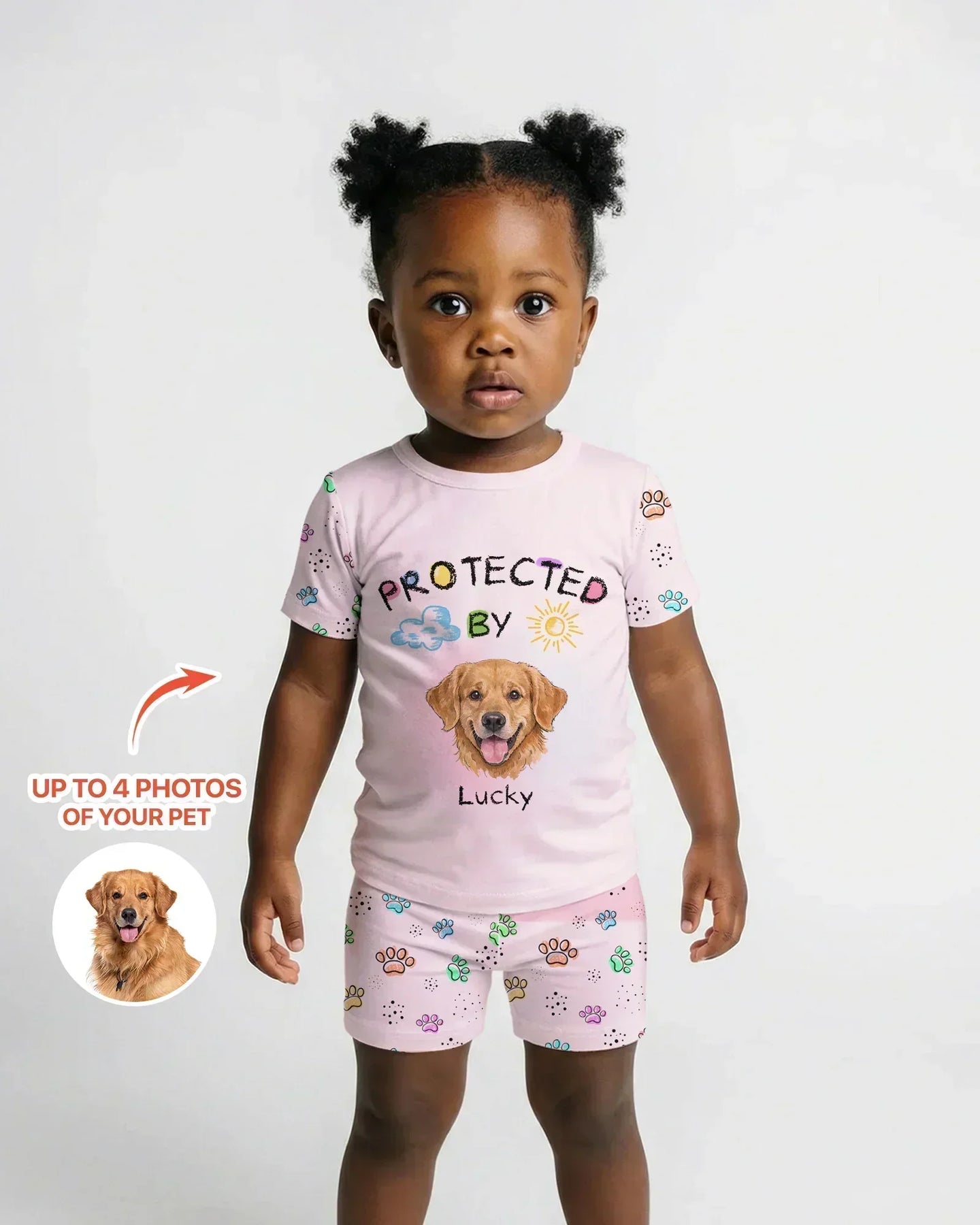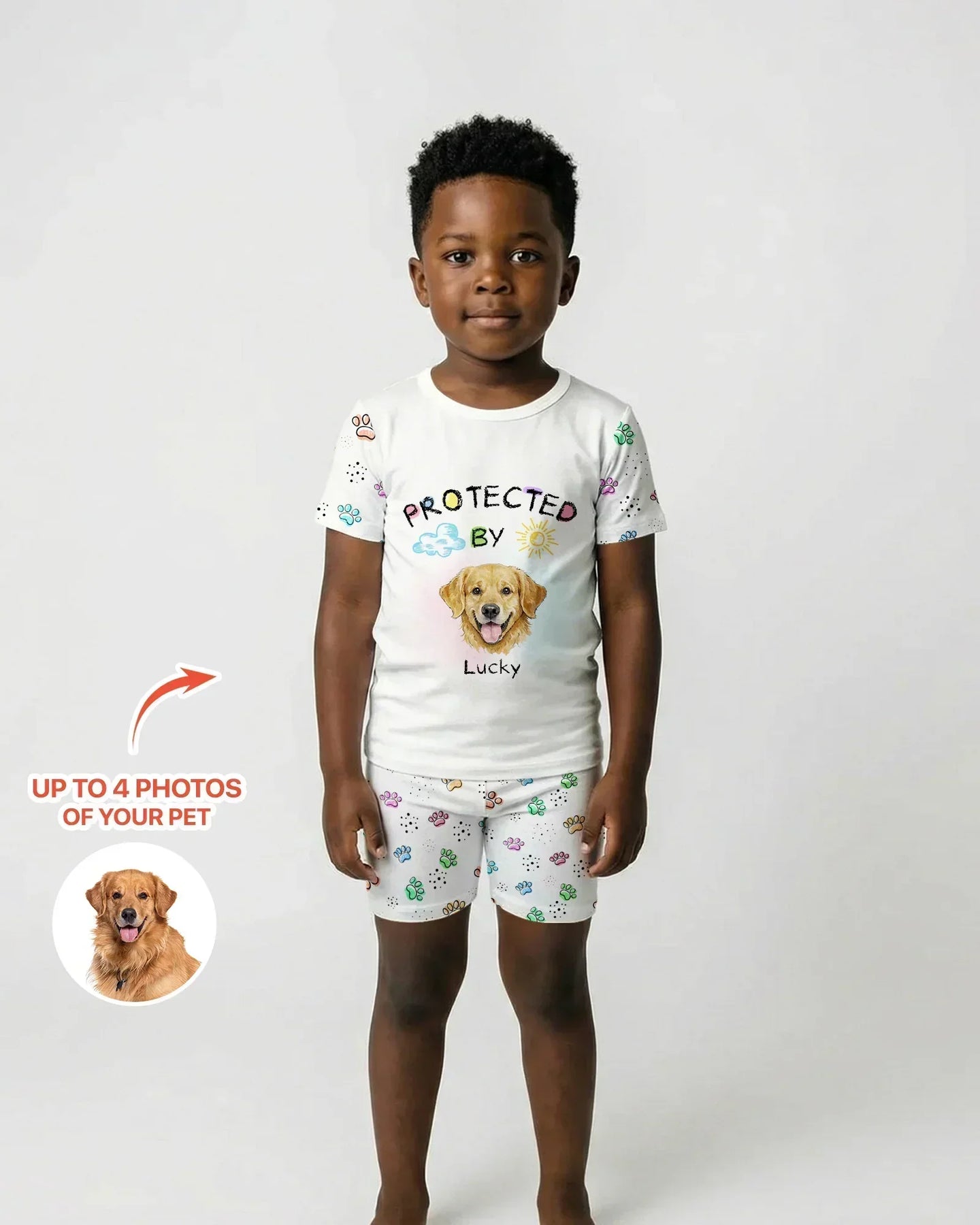Custom Photo Crayon “Protected By” Bamboo PJ Set & Sweatshirt turn your child’s favorite furry friend into the sweetest everyday comfort piece. Simply upload up to 4 photos of your pet, and we’ll transform their adorable face into a playful crayon-style design featured front and center—because nothing says comfort like being “Protected By” their best buddy!