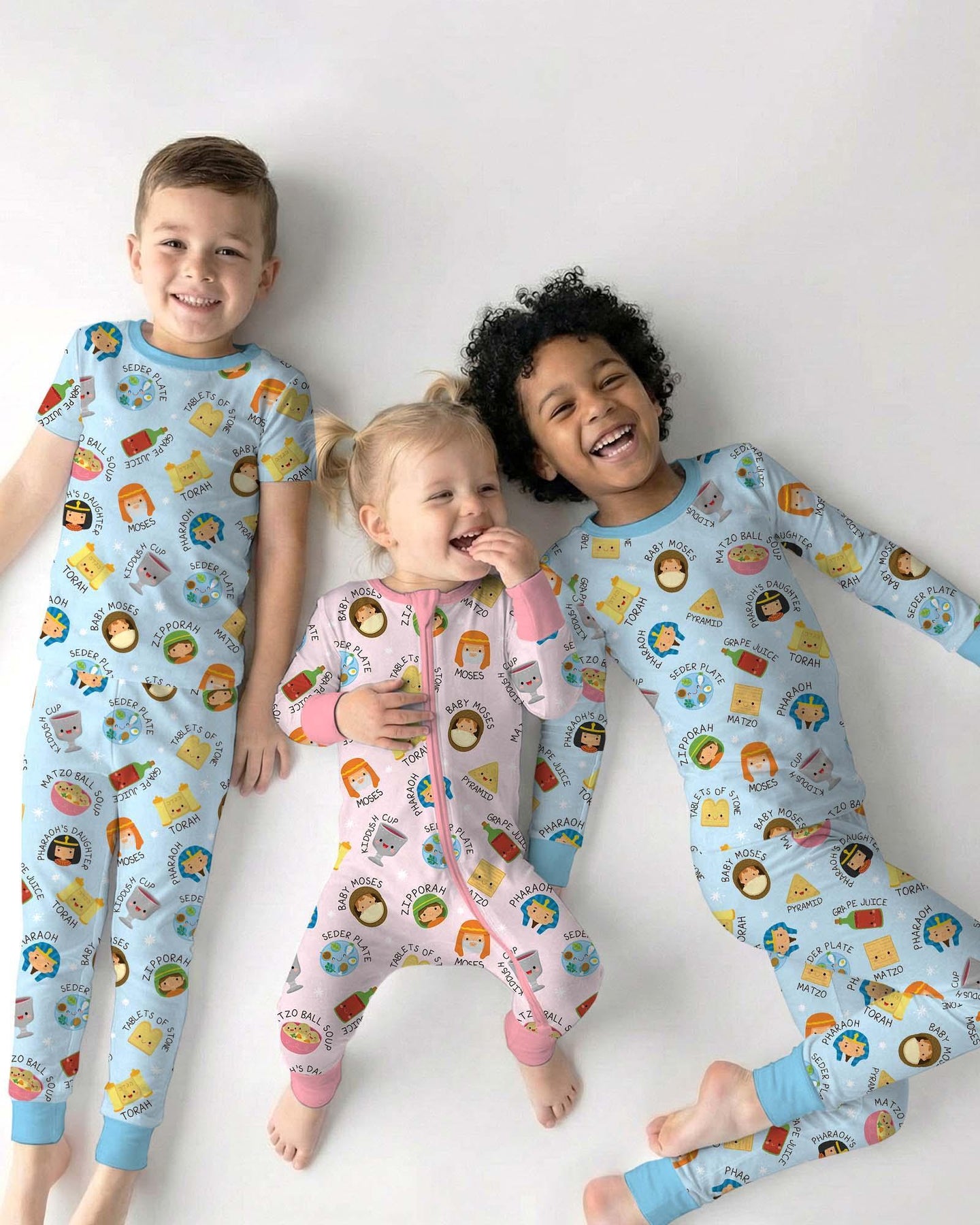 Cute Passover Characters Bamboo Zippies and PJ Sets bring the Passover story to life in the sweetest way. Featuring playful, kid-friendly illustrations of Moses, matzo, the Seder plate, grape juice, and more, this cheerful pattern is perfect for celebrating the holiday with little ones. Made from ultra-soft, breathable bamboo fabric, these pajamas are gentle on sensitive skin and cozy enough for bedtime, story time, and festive family moments. A fun and meaningful way to celebrate Passover—cute, comfy, and full of tradition ✡️🌸