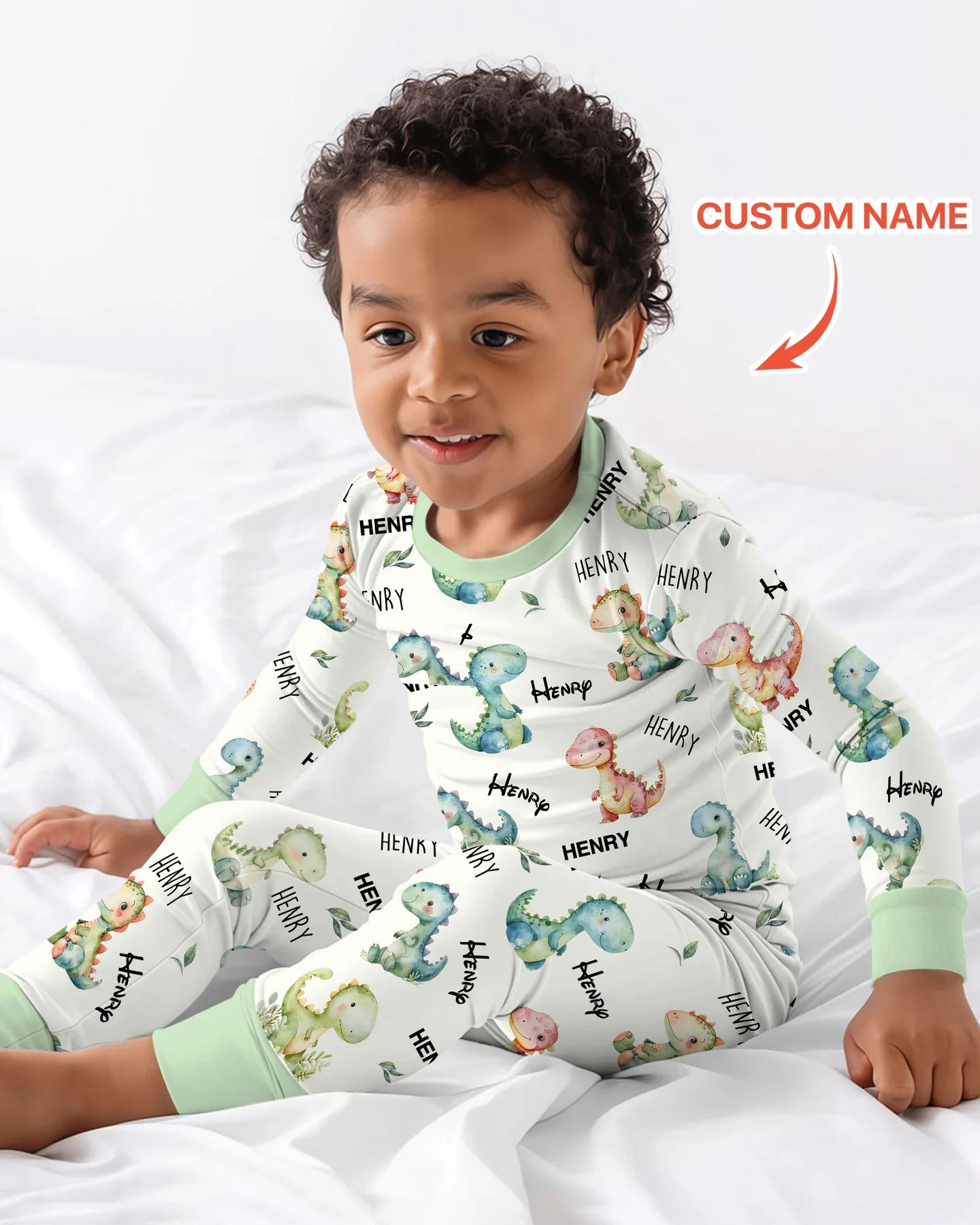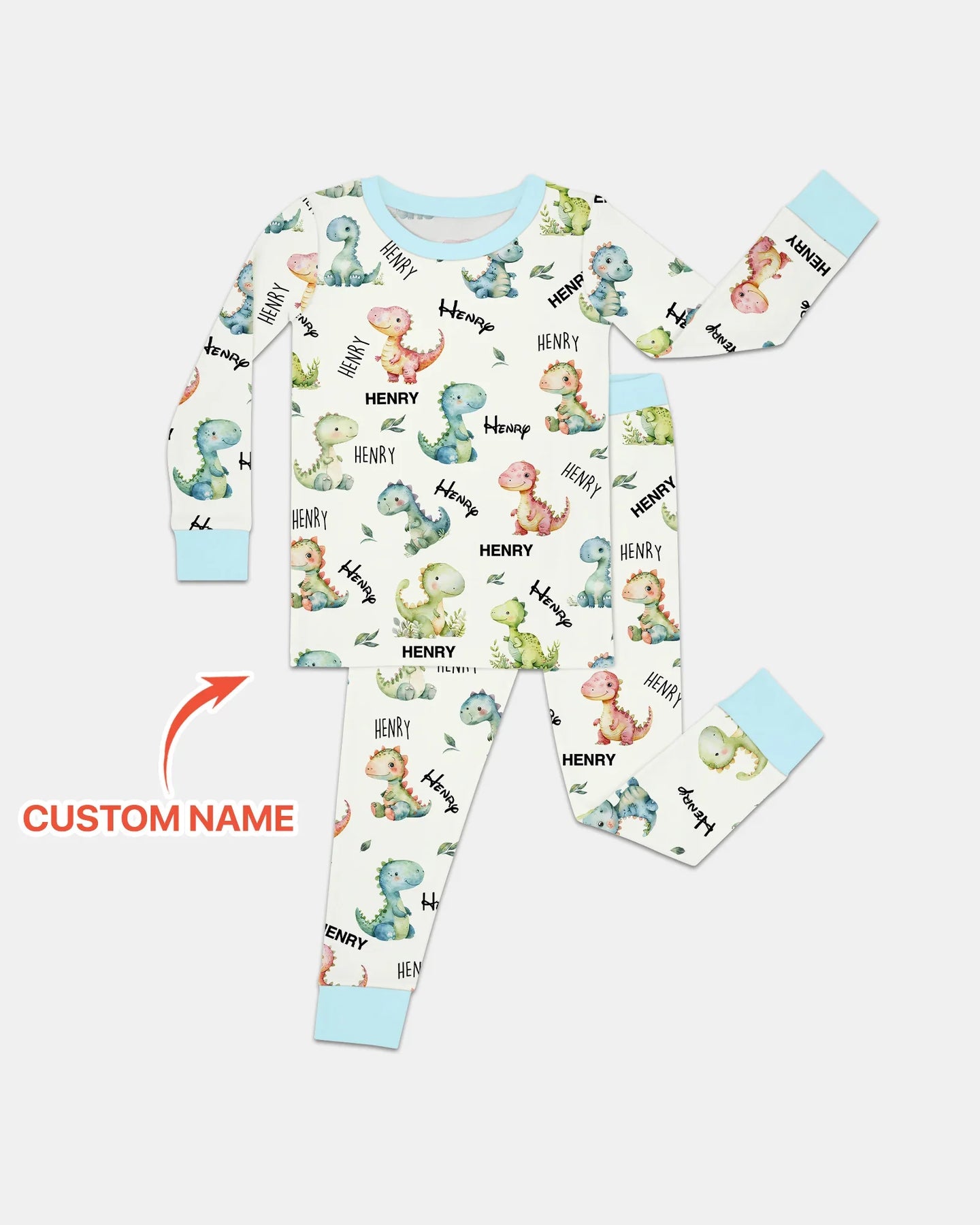 Dinosaur Custom Name Two Piece Long Sleeve Pajama Set