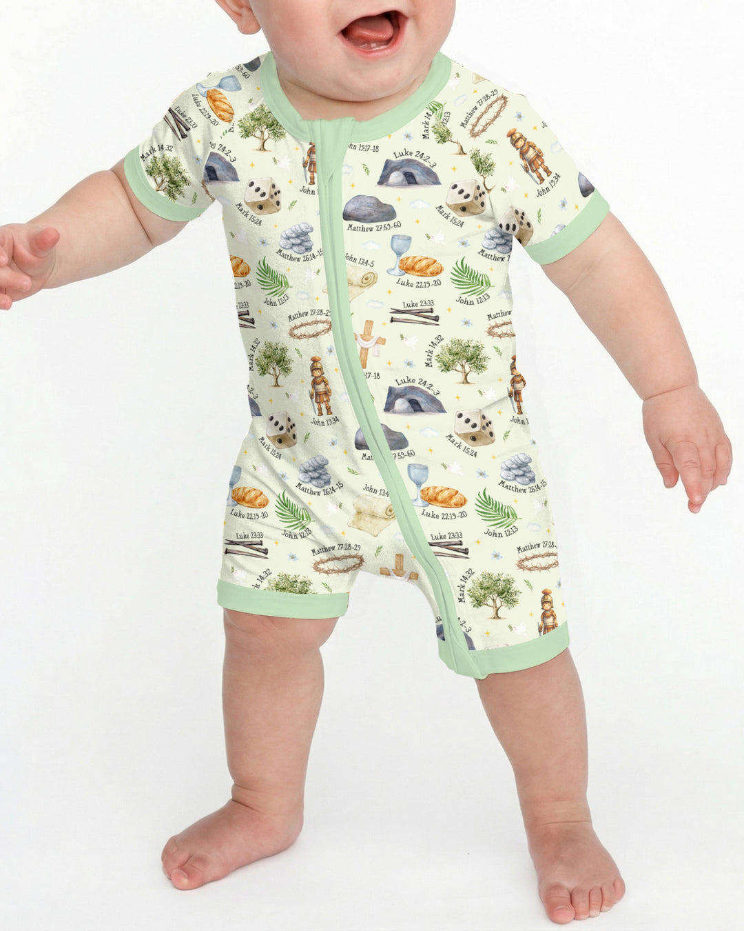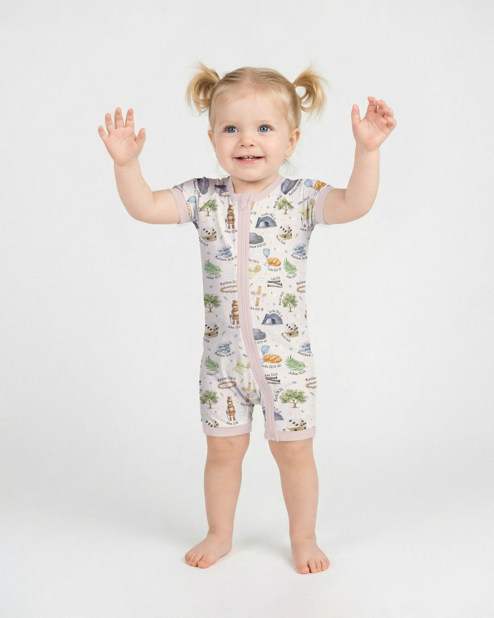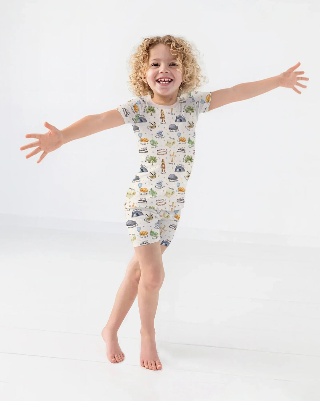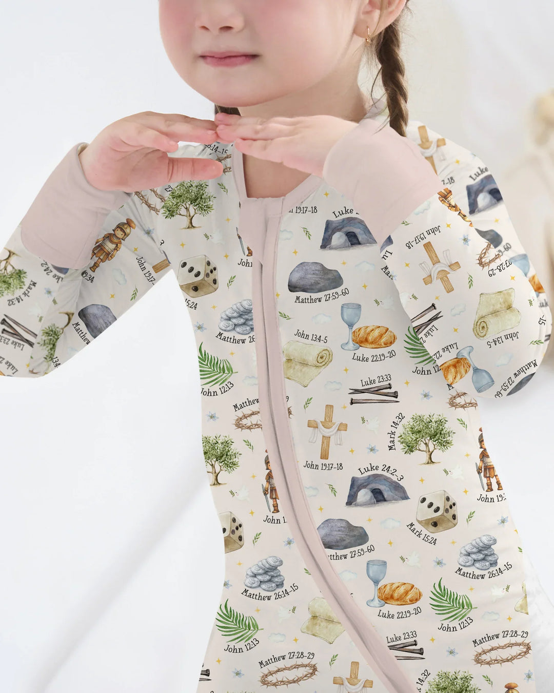Featuring faith-inspired illustrations and subtle scripture references, this collection is thoughtfully created for parents and little ones to wear together. The calming color palette and tender details make it perfect for Easter morning, church services, family gatherings, and memorable photos.