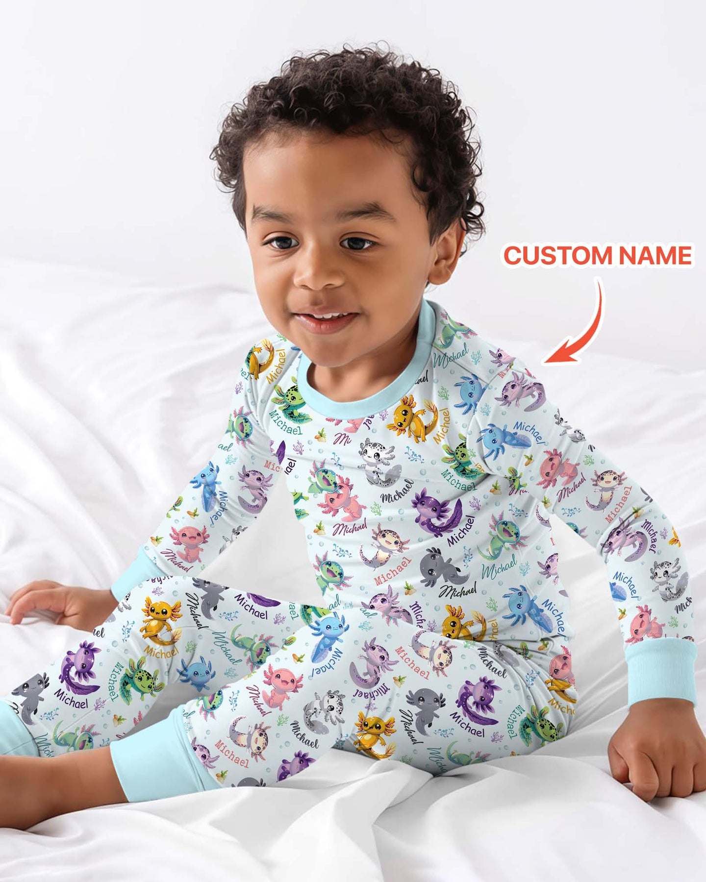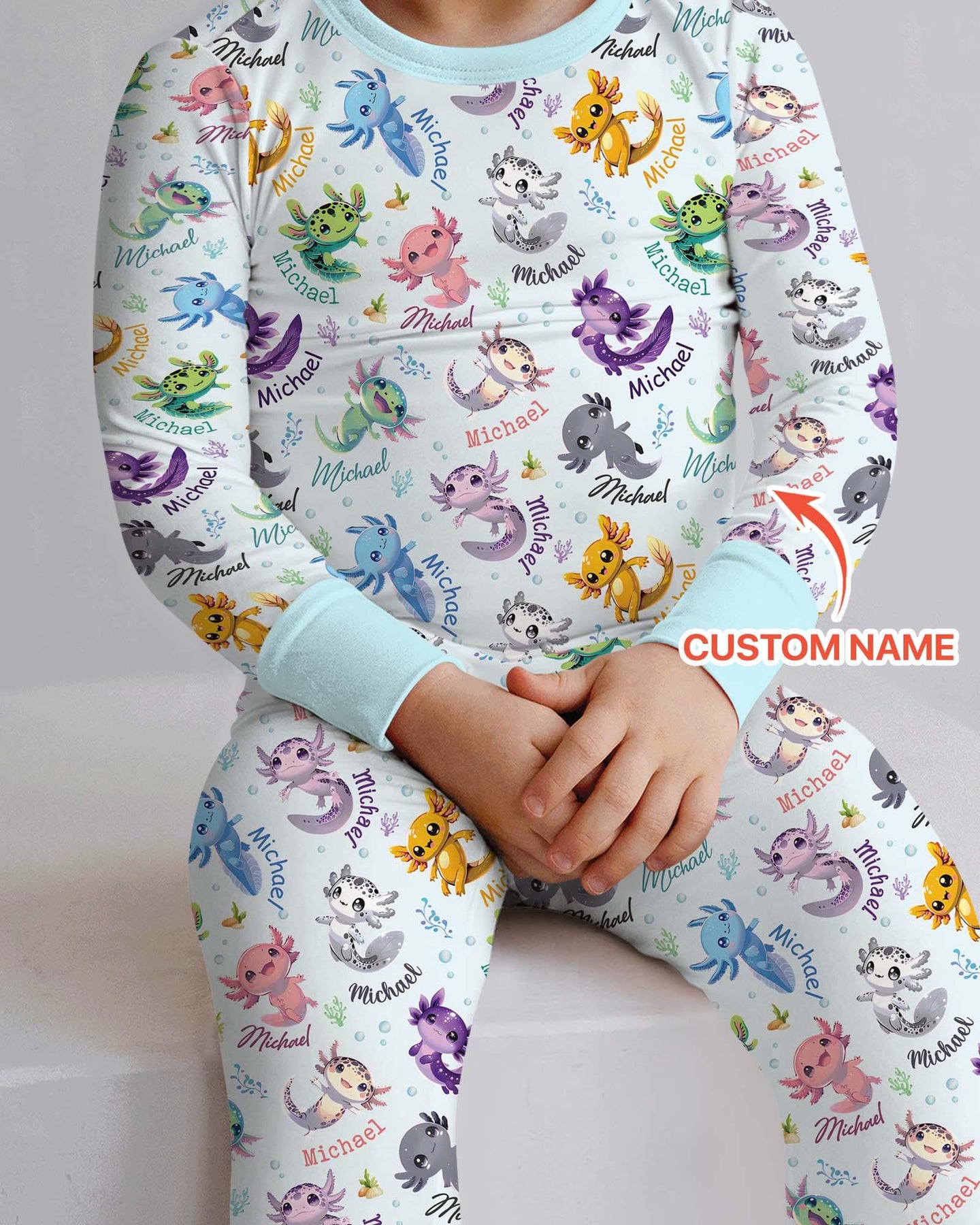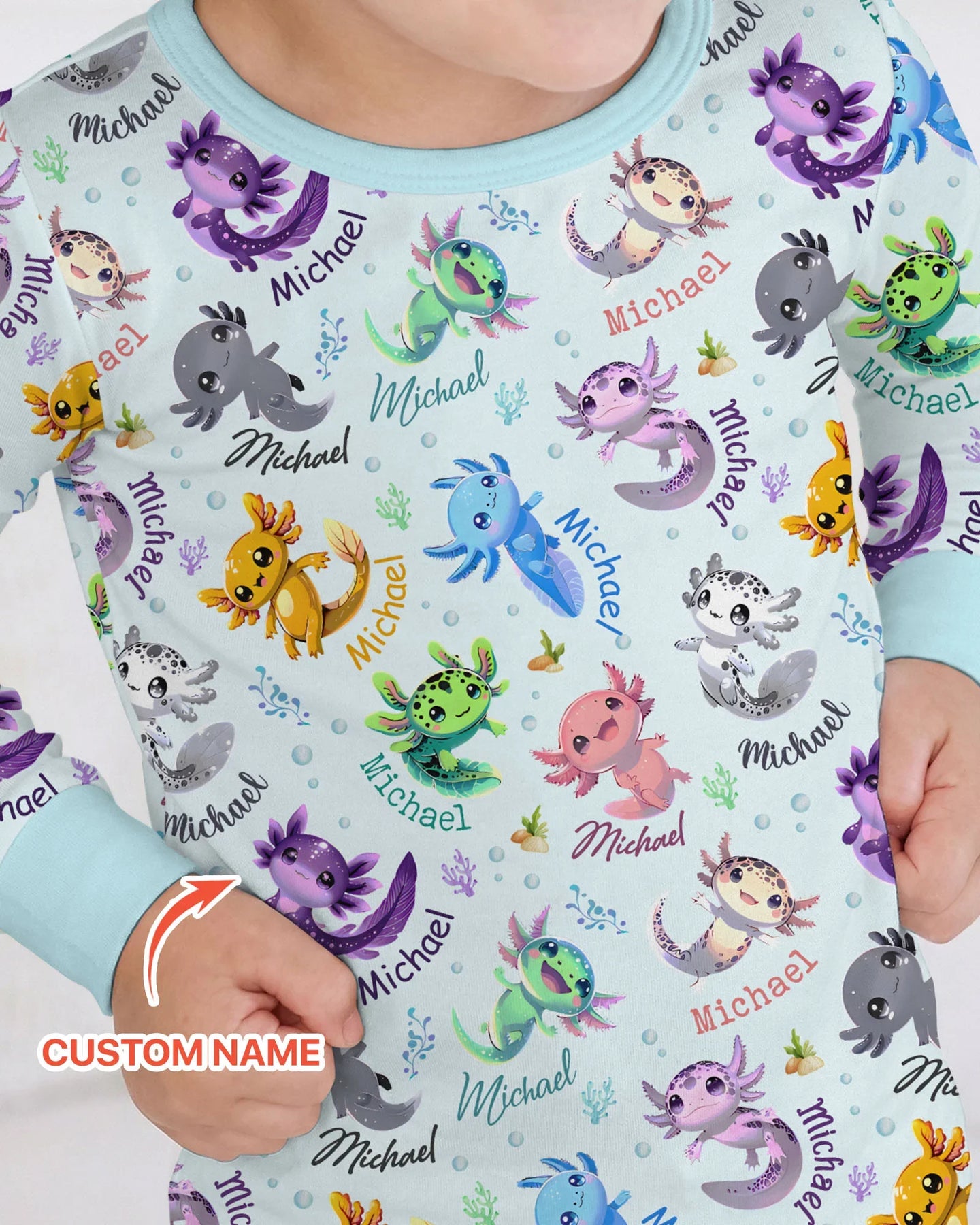 I Love You Axolotl Custom Name Two Piece Long Sleeve Pajama Set