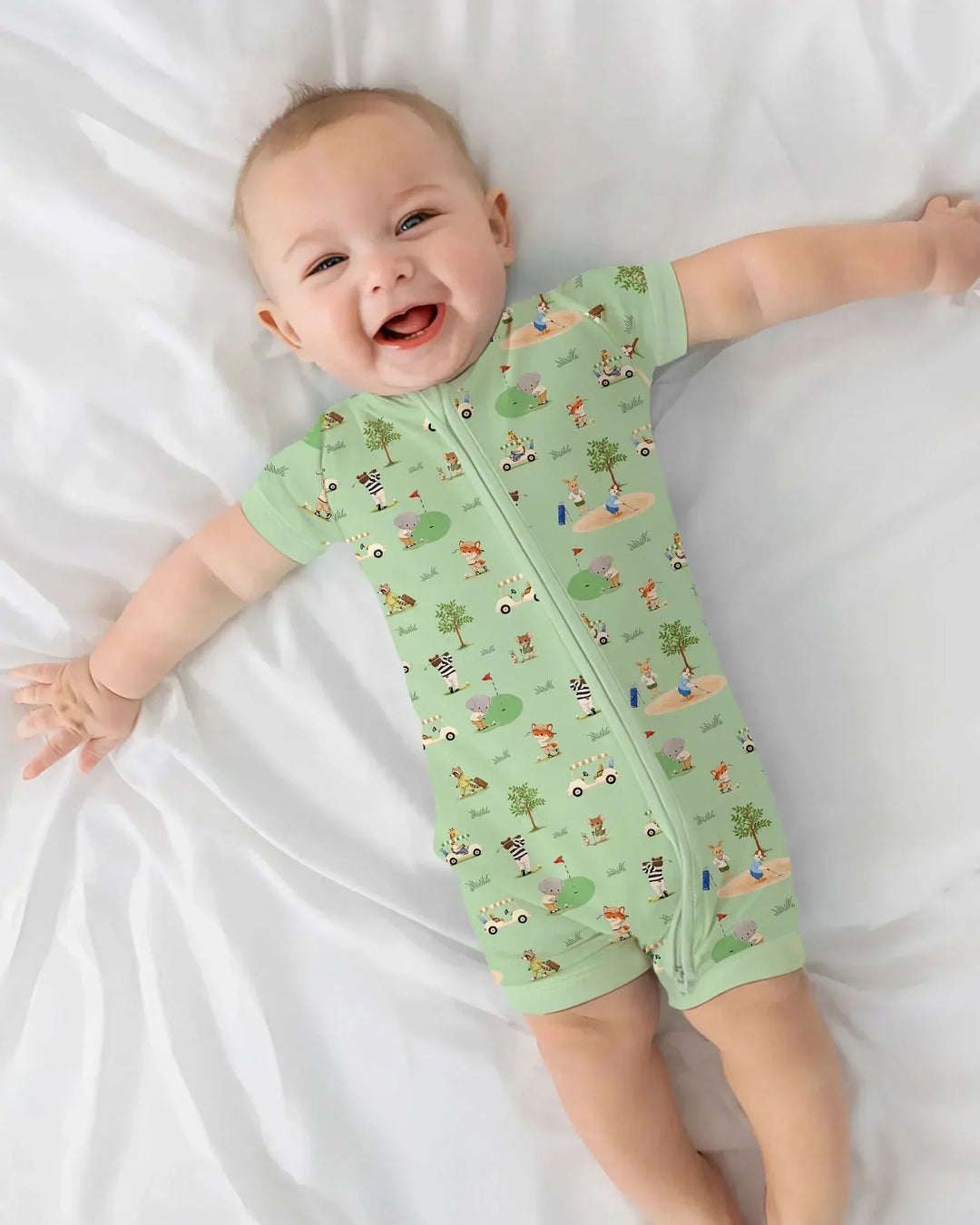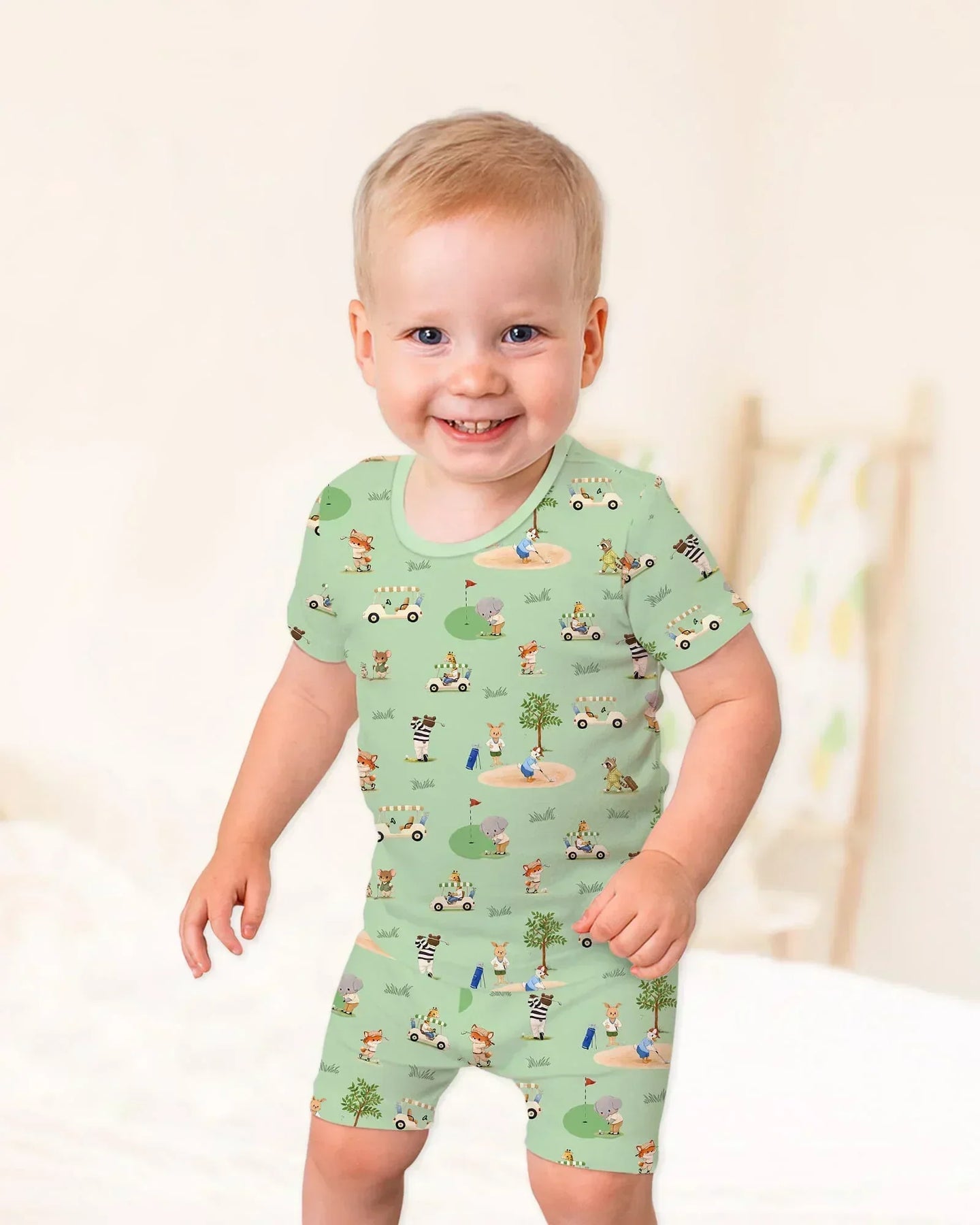 Explore bedtime adventures with our Golf Safari Pajama Collection, featuring playful animal golfers, carts, and course-inspired prints. Crafted from ultra-soft, breathable fabric, this collection is perfect for babies, kids, and family matching sets. Cozy, whimsical, and ideal for gifting, photos, and little golf lovers everywhere.