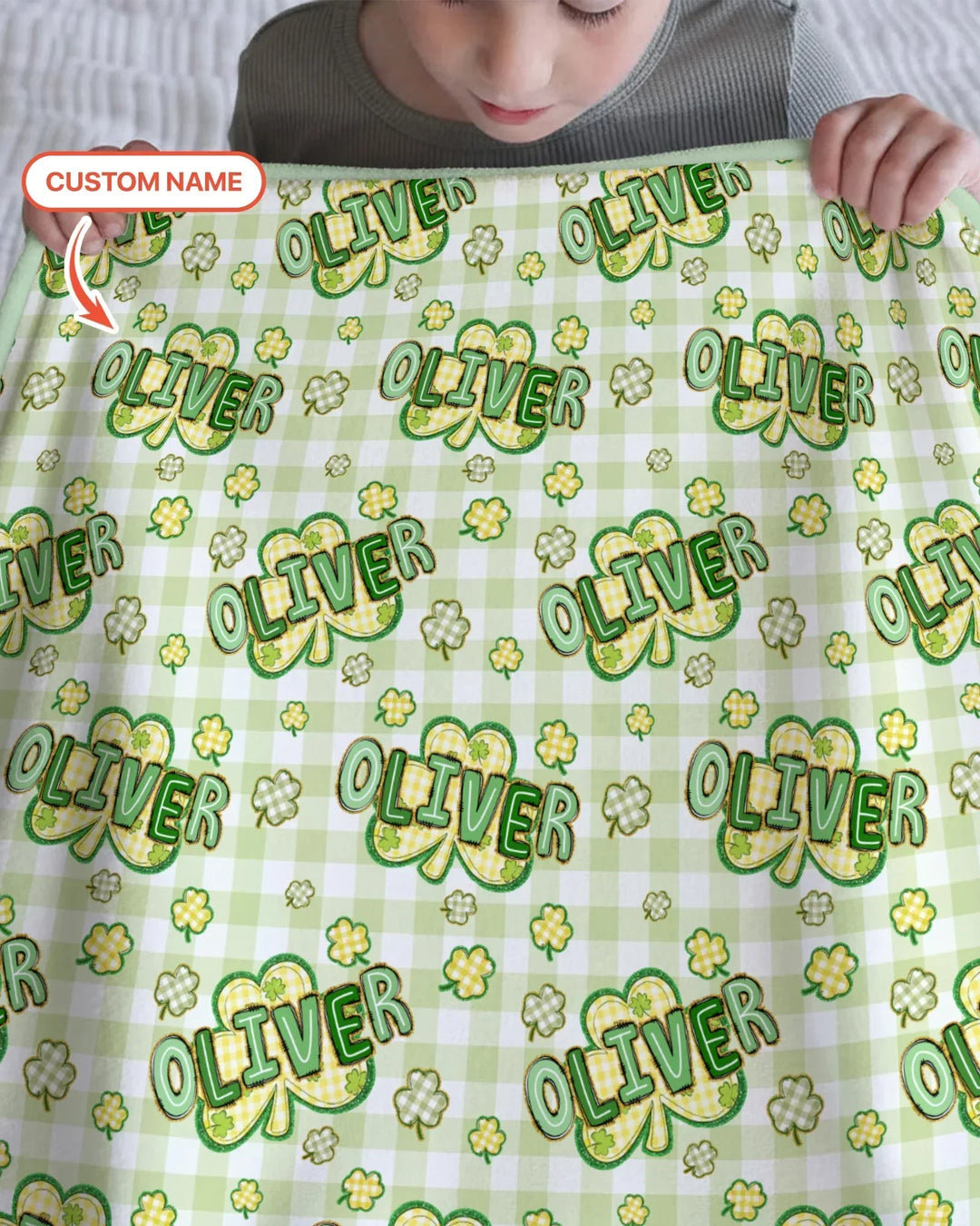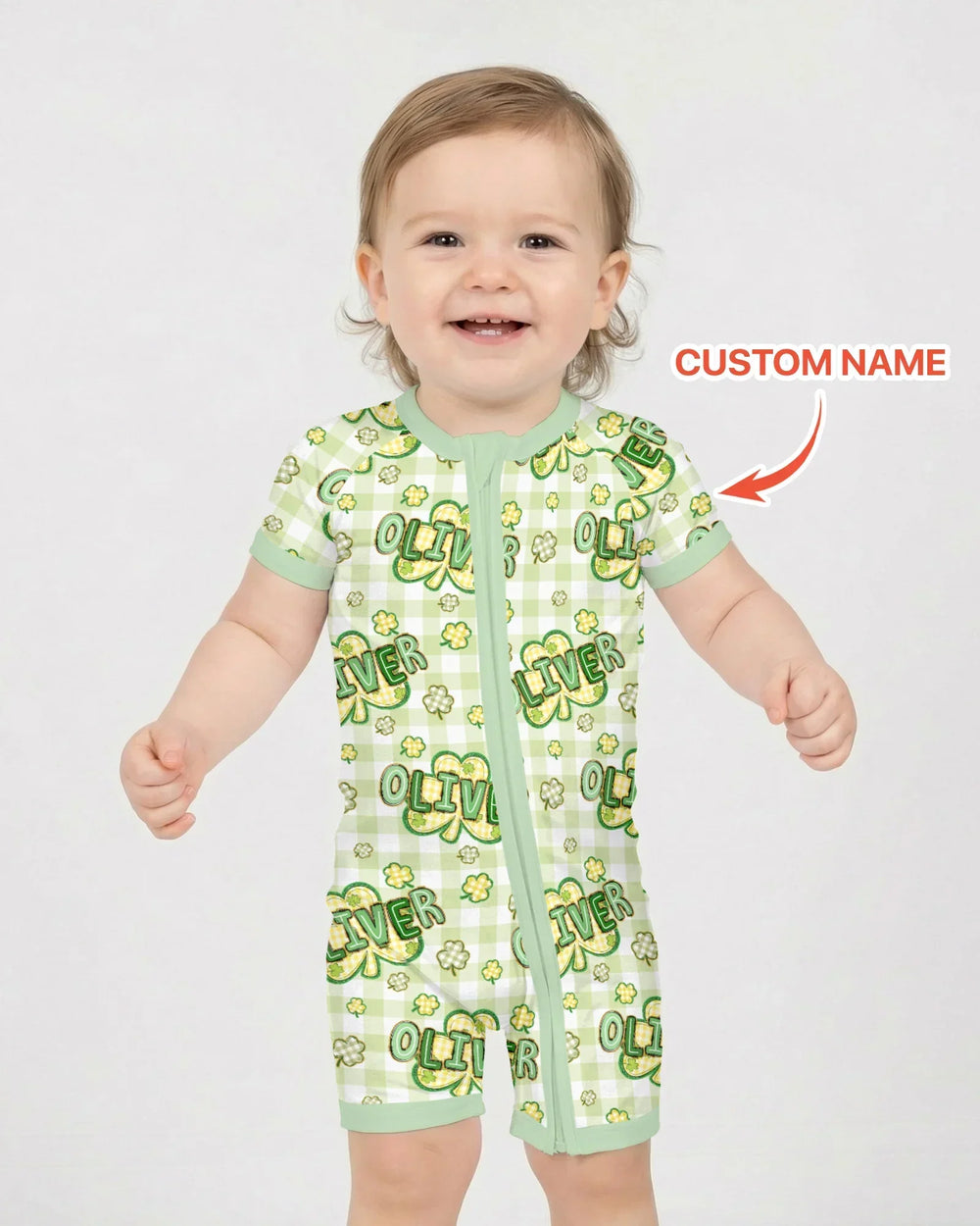 Bright, cheerful, and full of good vibes, the Lucky Shamrock Custom Name collection is all about celebrating your little one as your cutest good-luck charm. Playful shamrocks, soft green gingham, and retro-style lettering create a fun, festive look that feels perfect for St. Patrick’s Day and every lucky day in between.