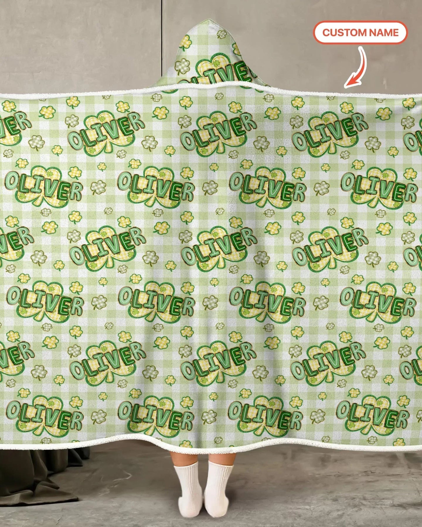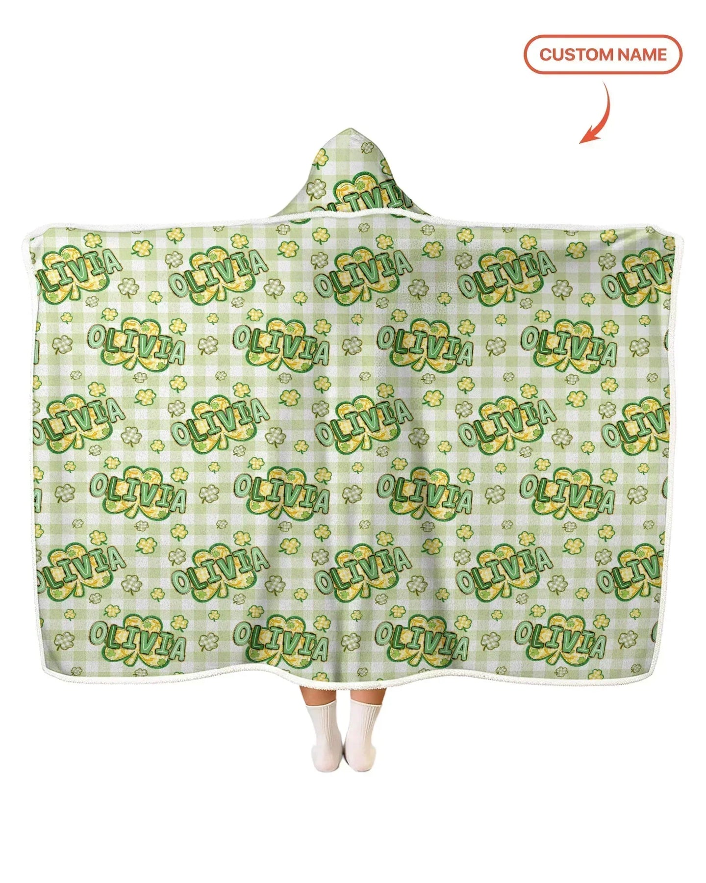 Lucky Shamrock Custom Name Wearable Hooded Blanket