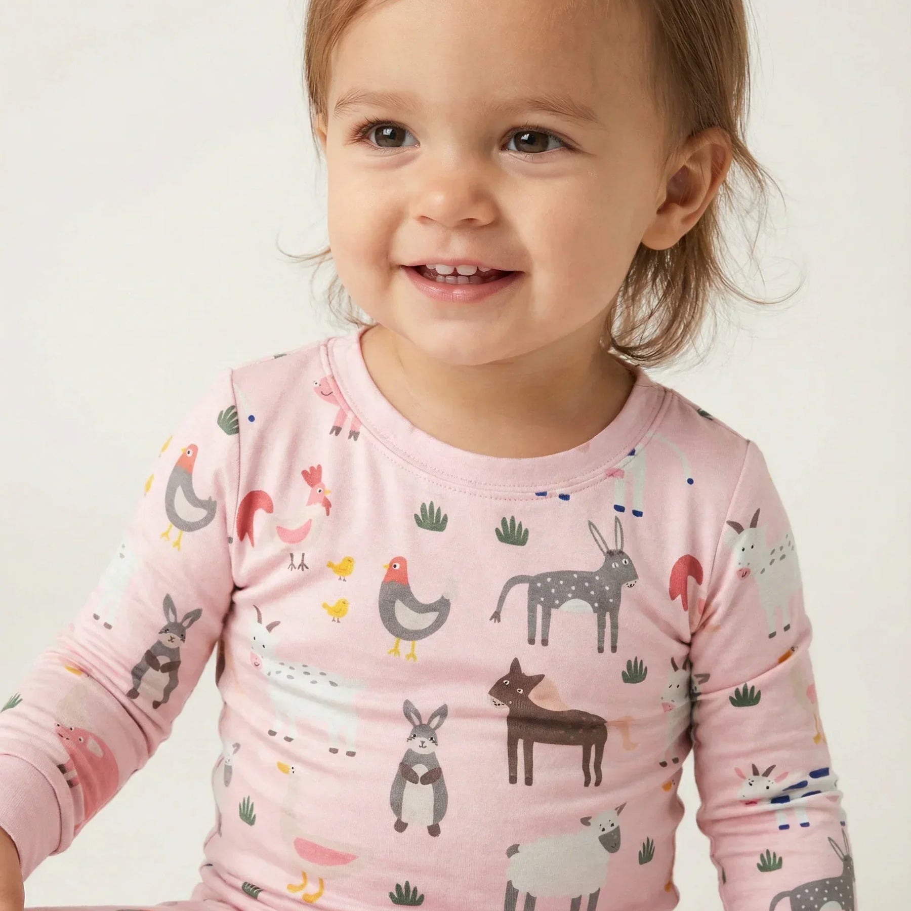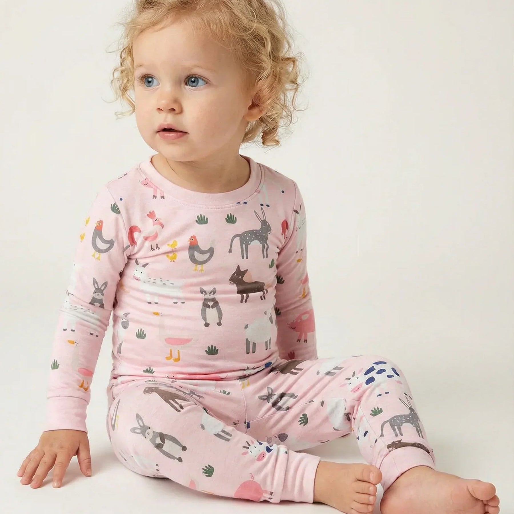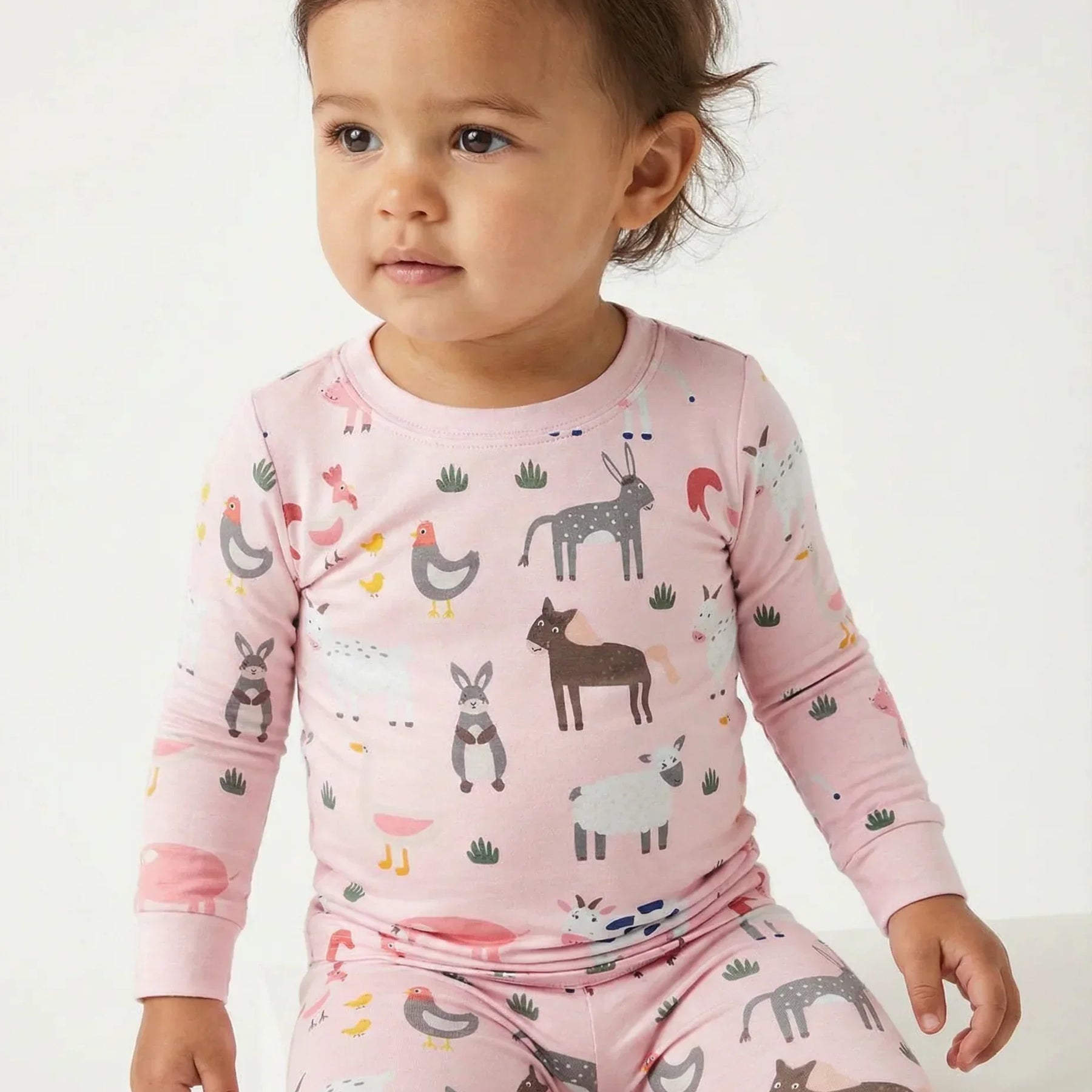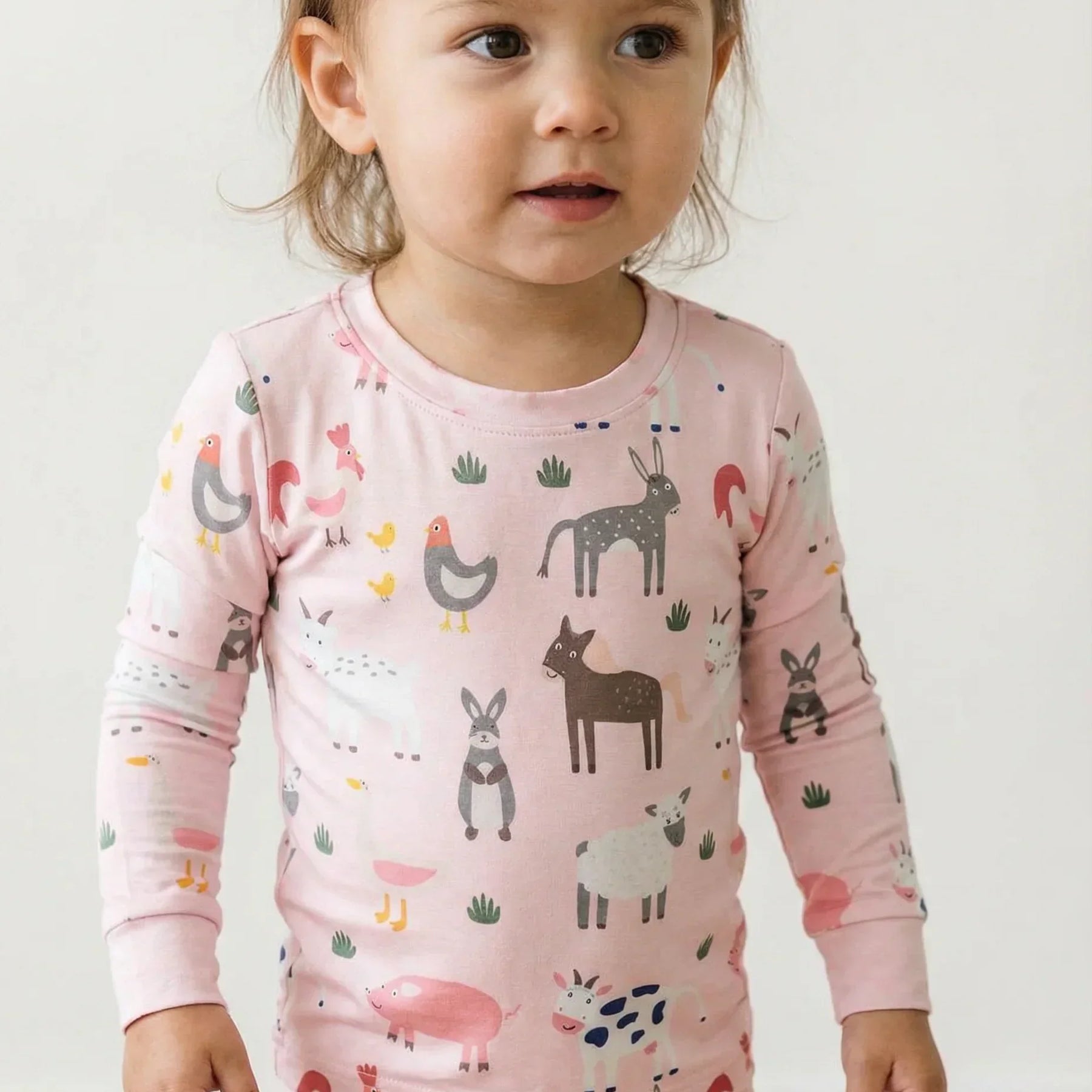 Pink Farm Animals Bamboo Two Piece Pajama Set
