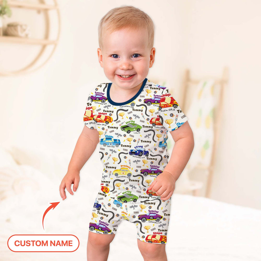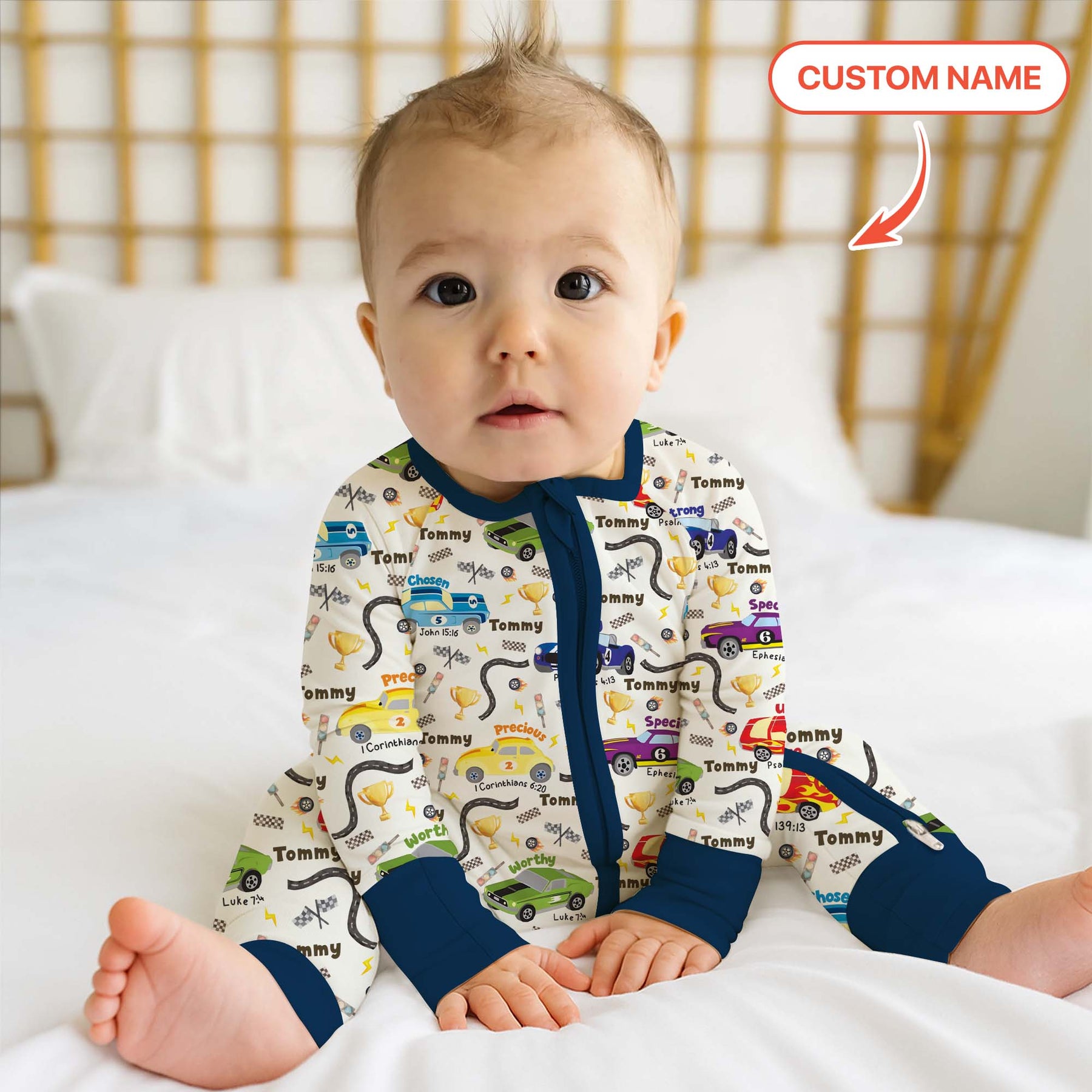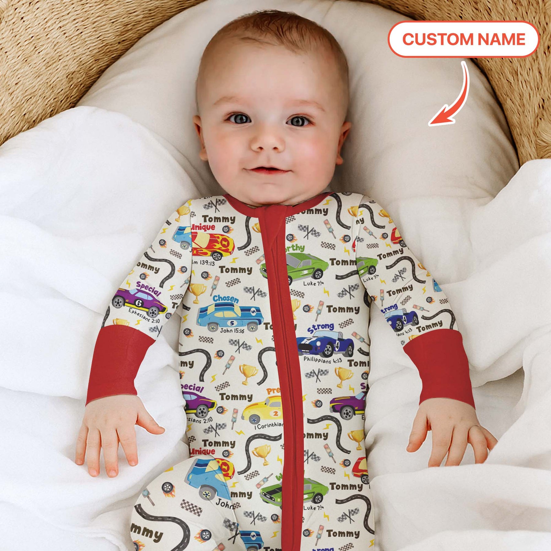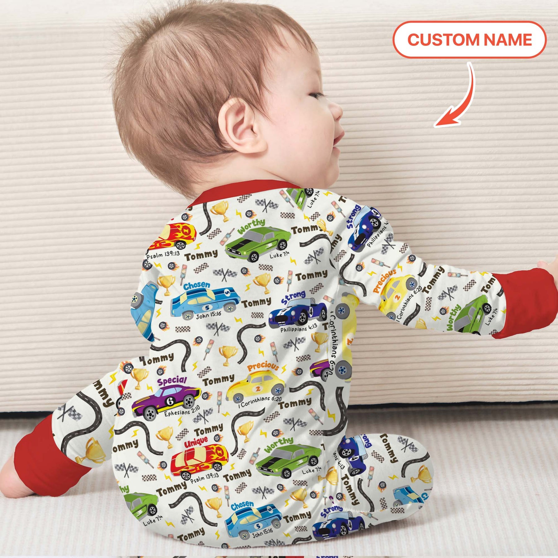 Start your engines and race into bedtime with our Racing Fun pajamas! Featuring colorful race cars, shiny trophies, and powerful faith-filled affirmations like “Strong,” “Chosen,” “Precious,” and more – all inspired by Scripture. This playful design not only fuels your child’s imagination but also reminds them of their God-given identity every night. Soft, breathable fabric keeps little racers cozy, while the option to add their custom name makes it uniquely theirs. Perfect for kids who love speed, fun, and God’s Word all in one!