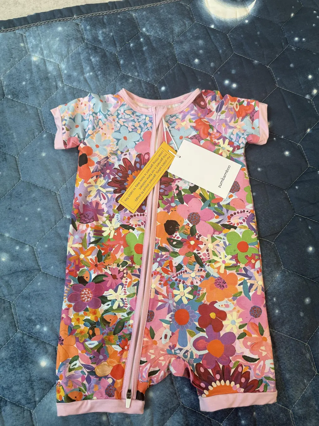 Add color with our rainbows pattern. Crafted from soft bamboo viscose, this romper offers comfort and breathability, with a double zipper for quick diaper changes.