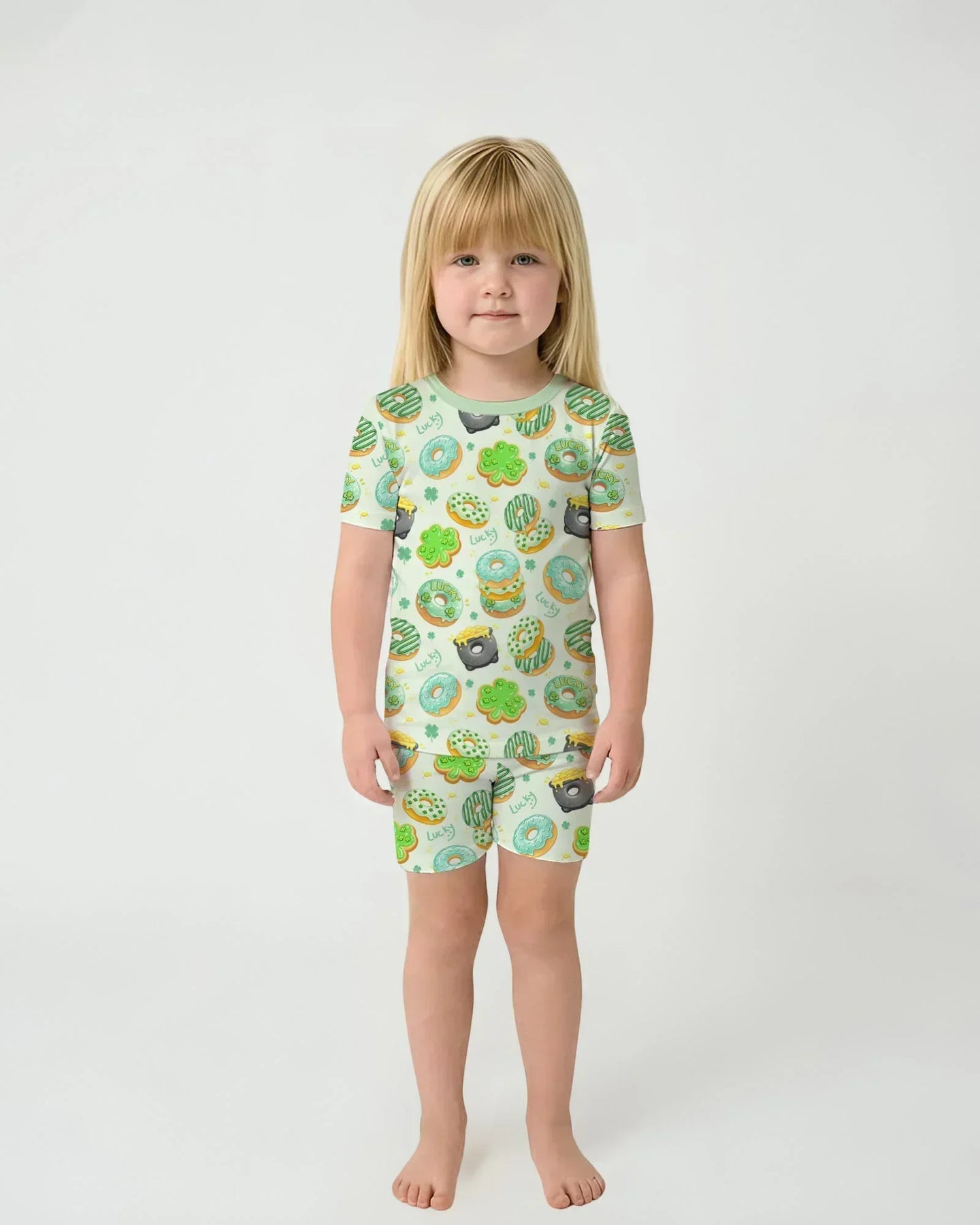 St. Patrick's Day Donut Two Piece Short Sleeve Shorts Pajama Set
