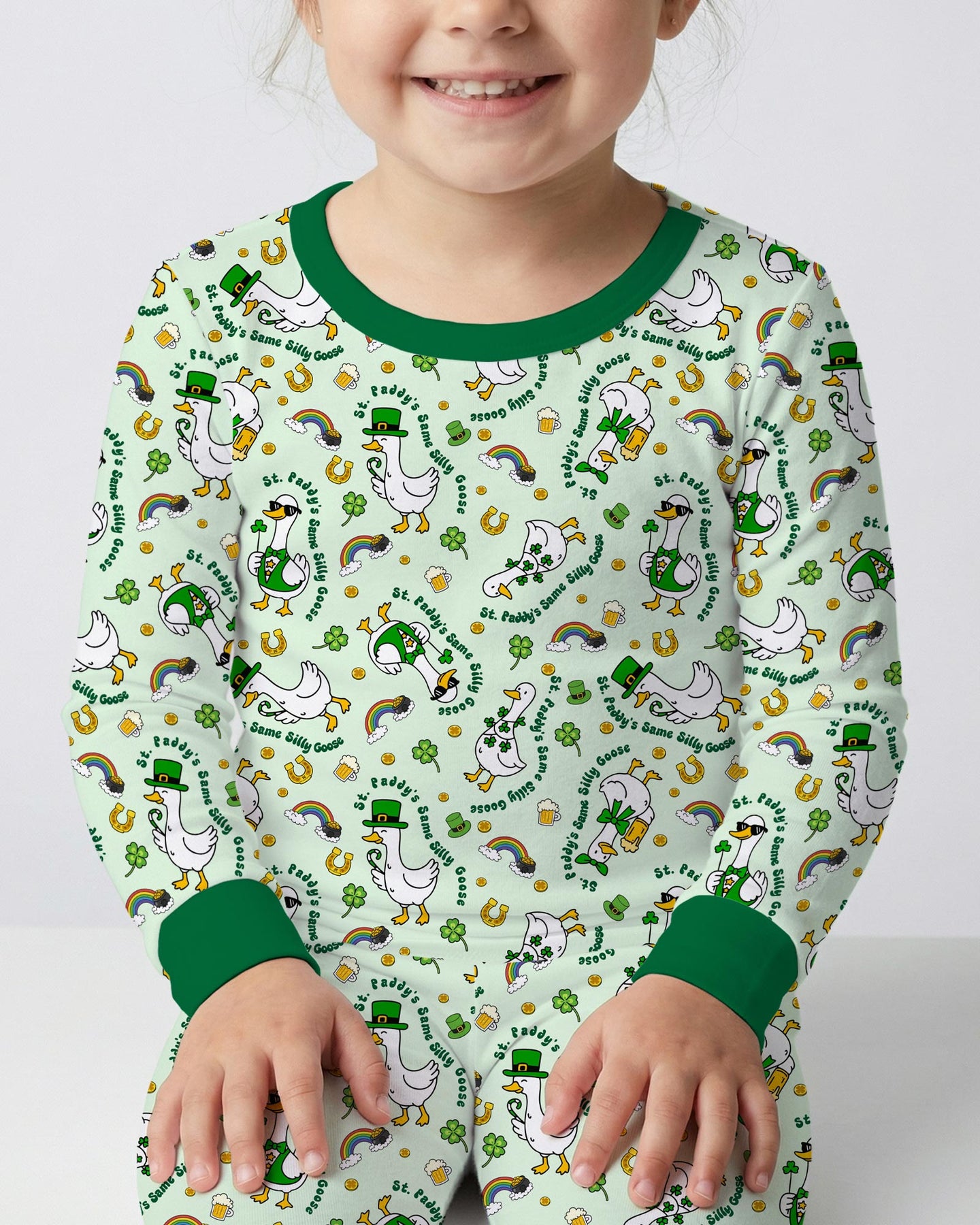 St. Patrick's Day Silly Goose Two Piece Long Sleeve Pajama Set