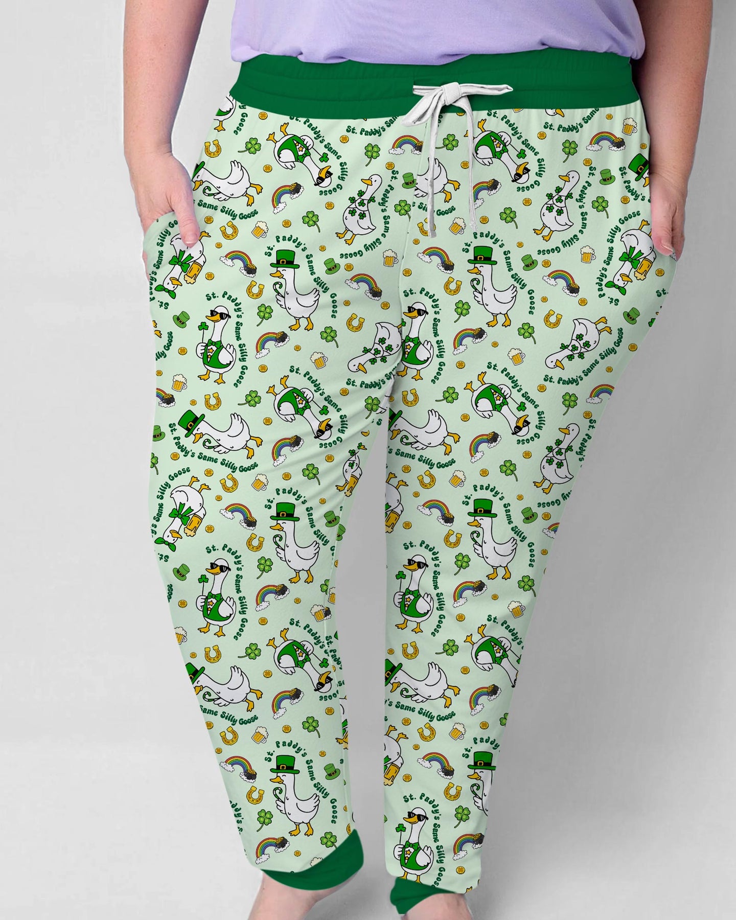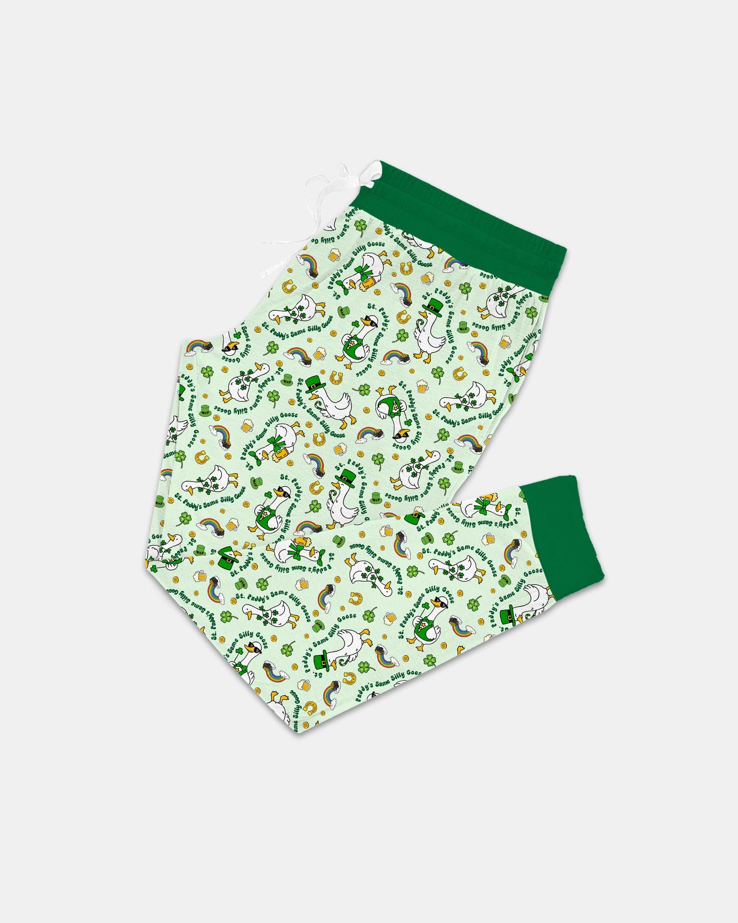 Get ready to celebrate in the silliest way with St. Patrick’s Day Silly Goose! This playful pattern features cheerful geese dressed in festive green, surrounded by shamrocks, rainbows, lucky horseshoes, and gold coins—bringing all the lucky Irish vibes to bedtime fun.