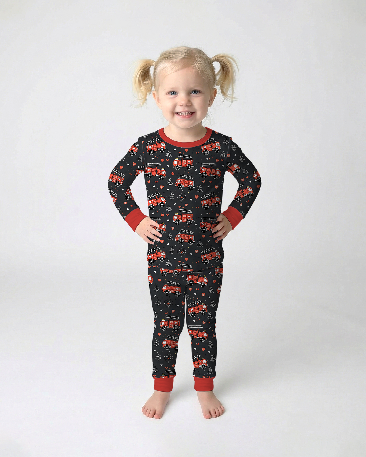 Valentine Fire Trucks Two Piece Long Sleeve Pajama Set