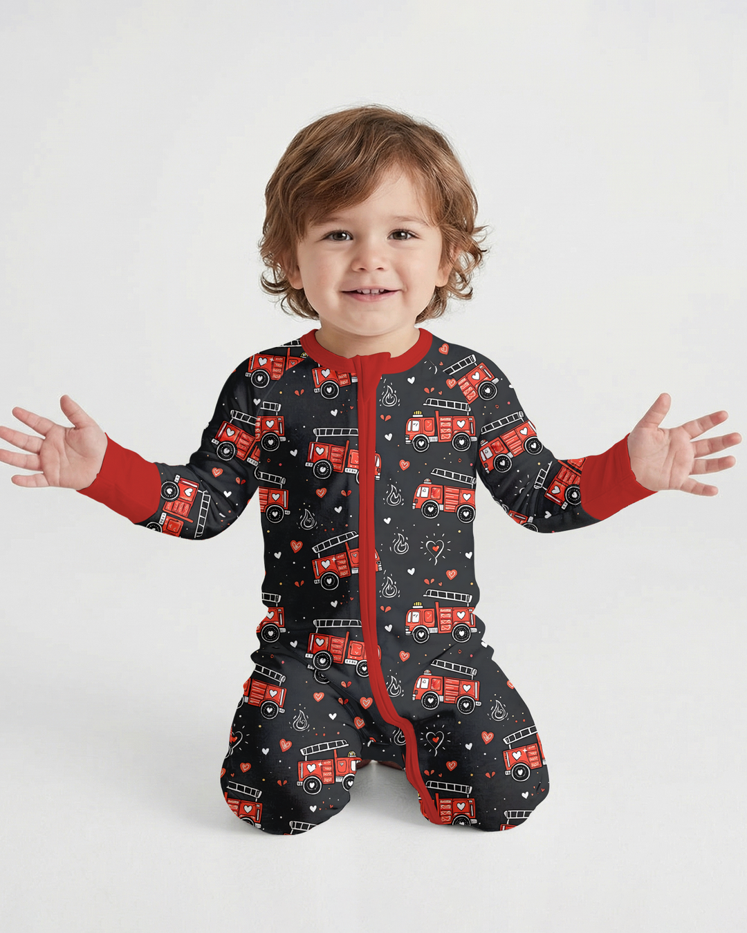 Ignite your little one's heart with this charming Valentine-themed fire truck hoodie, featuring a playful all-over print of red fire engines and sweet hearts. Crafted for ultimate comfort, this cozy oversized hoodie is the perfect way for your mini hero to celebrate the season of love in style.