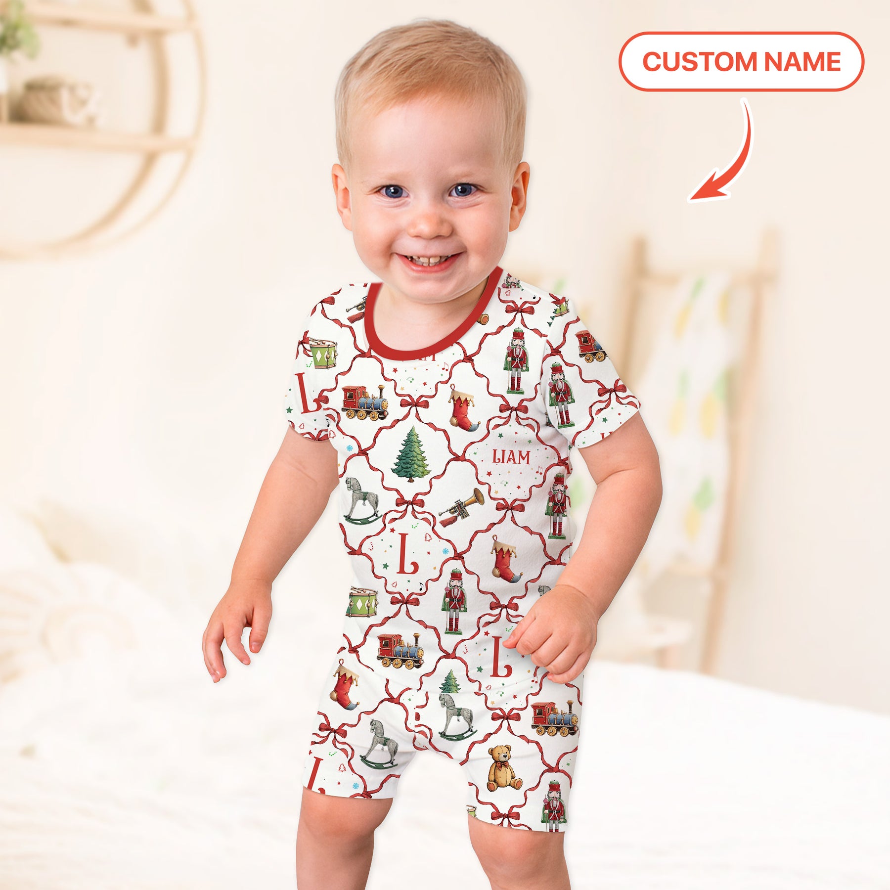 Vintage Christmas Toy Custom Name Boy Two Piece Short Sleeve Shorts Pajama Set